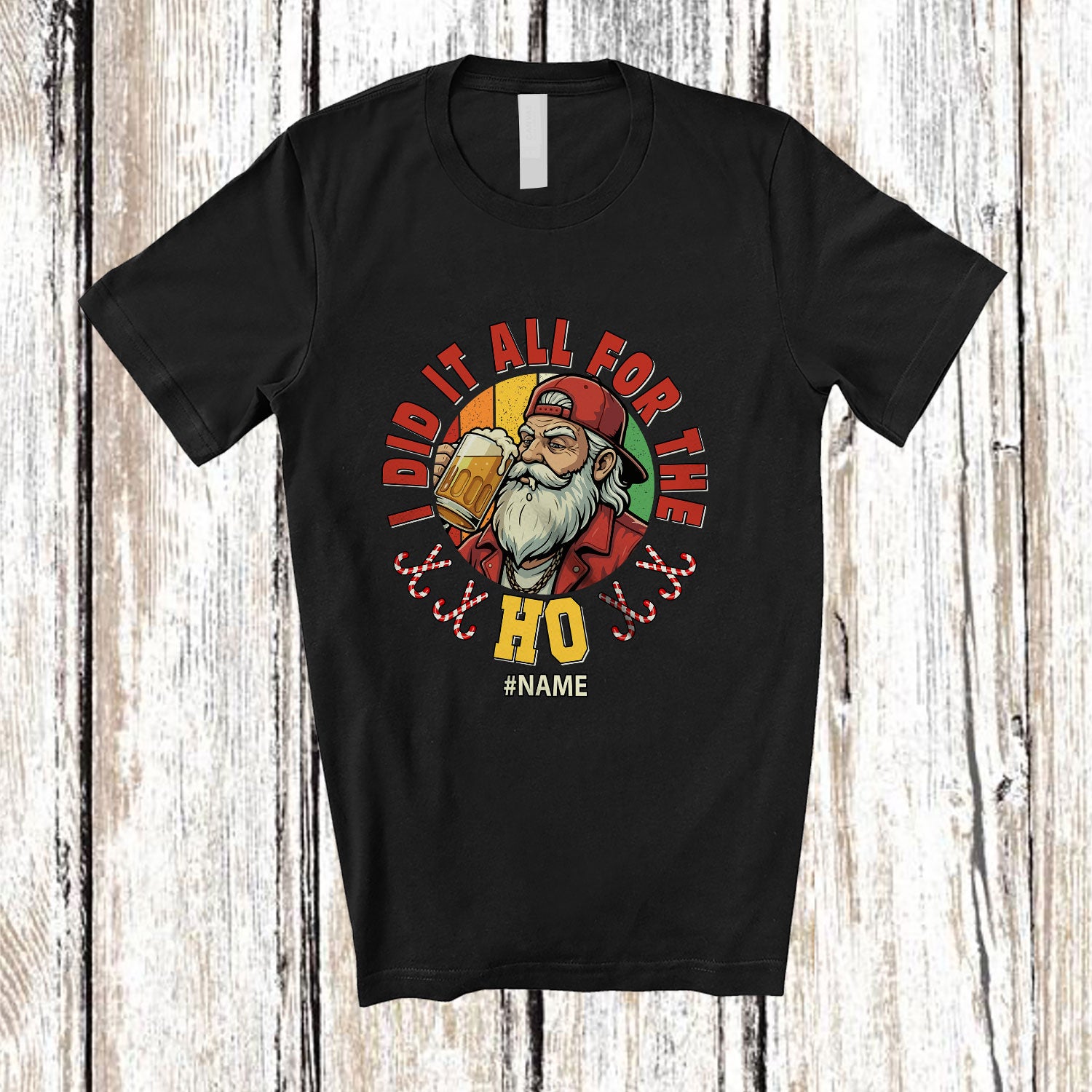 Personalized Custom Name I Did It All For Ho; Awesome Christmas Santa Drinking Beer; Drunker T-Shirt. This cotton t-shirt is a durable staple product with a classic fit. One of the most popular items, it has a relaxed style made for everyday and casual wear.