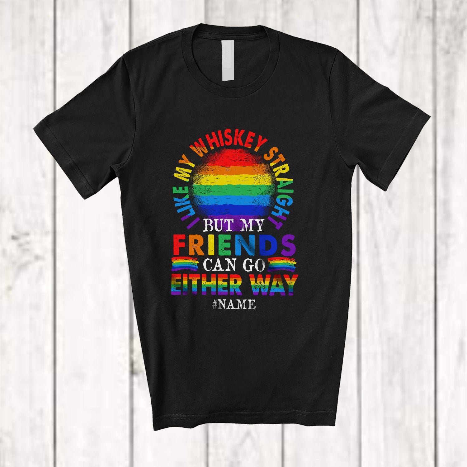 Personalized Custom Name I Like My Whiskey Straight; Humorous LGBTQ Gay Rainbow; Drinking T-Shirt