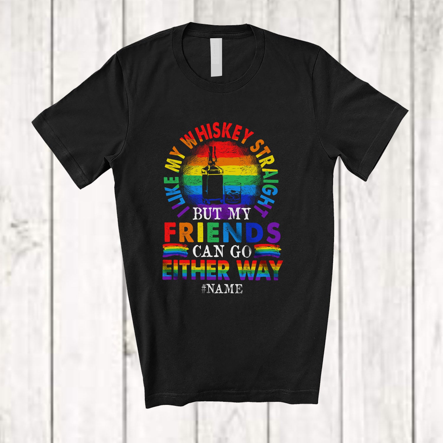 Personalized Custom Name I Like My Whiskey Straight; Joyful LGBTQ Drinking Gay Rainbow T-Shirt