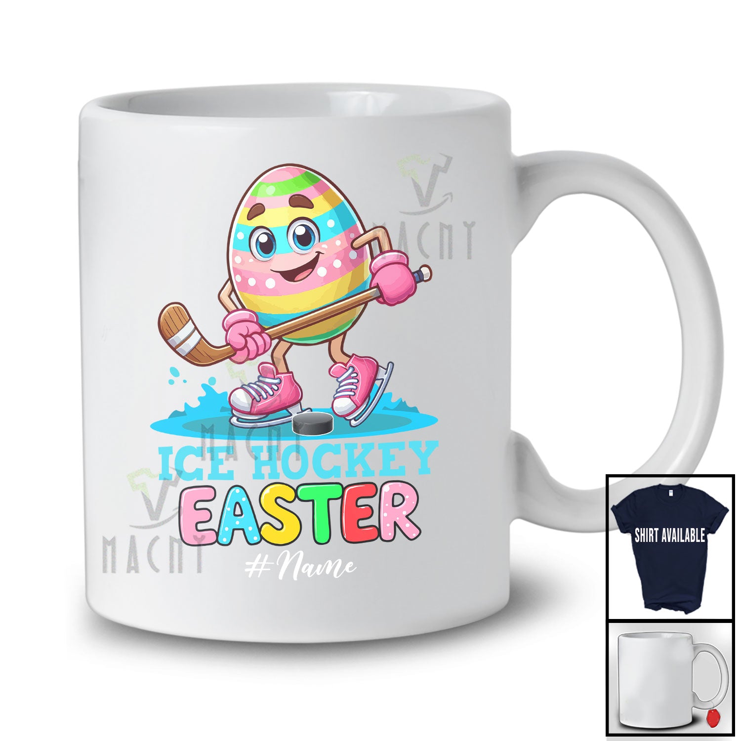 • Personalized Custom Name Ice Hockey Easter; Colorful Easter Egg Playing Custom Name Sport Player T-Shirt. This cotton t-shirt is a durable staple product with a classic fit. One of the most popular items, it has a relaxed style made for everyday and casual wear.
