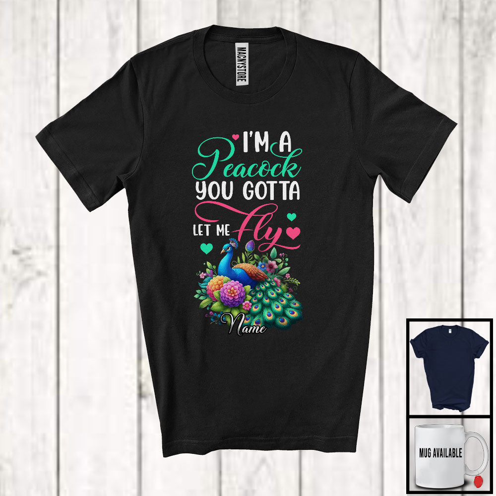 Personalized Custom Name I'm A Chicken You Gotta Let Me Fly; Floral Animal Peacock; Flowers T-Shirt