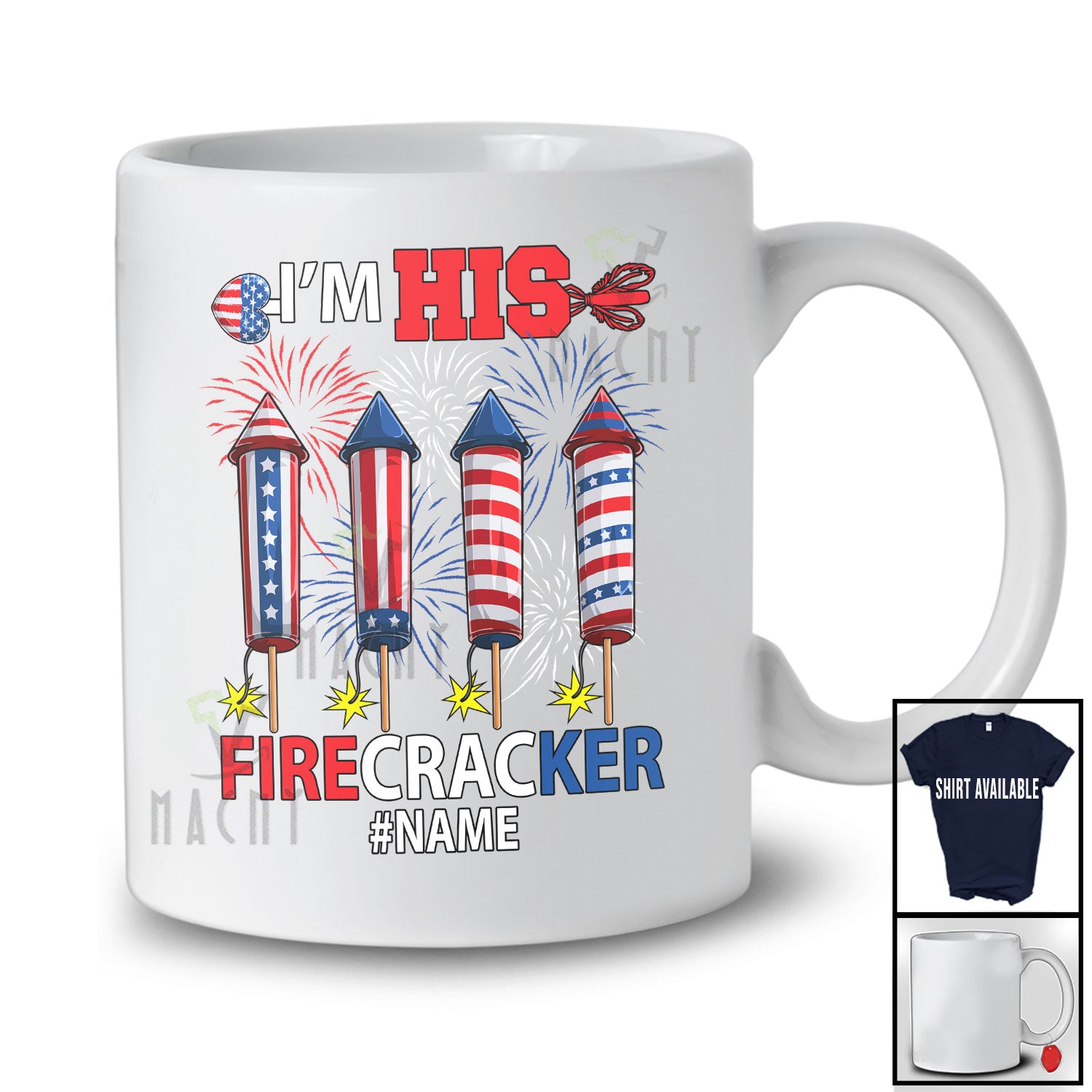 • Personalized Custom Name I'm His Firecracker; Amusing 4th Of July US Flag; Patriotic Couple T-Shirt. This cotton t-shirt is a durable staple product with a classic fit. One of the most popular items, it has a relaxed style made for everyday and casual wear.