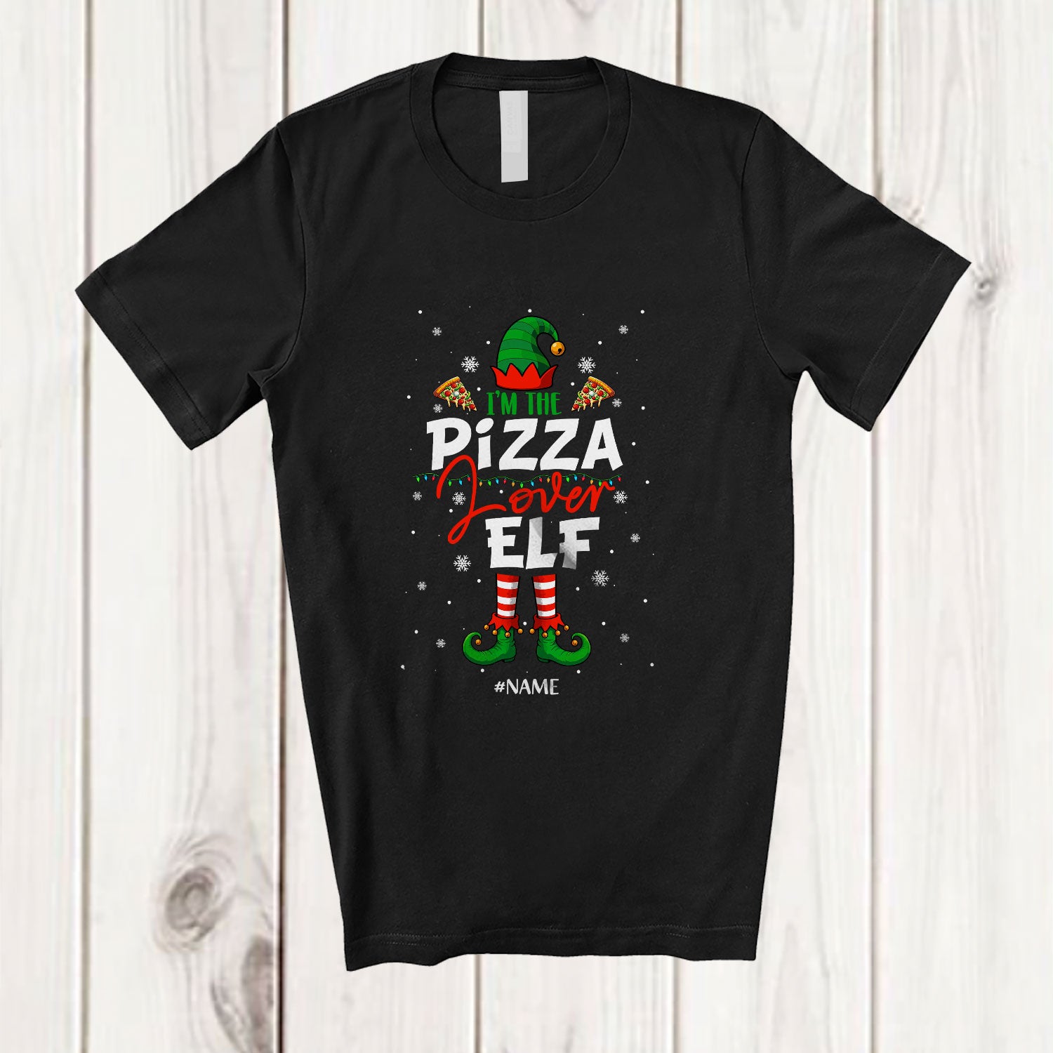 Personalized Custom Name I'm Pizza Lover Elf; Humorous Christmas Lights Naughty Family T-Shirt