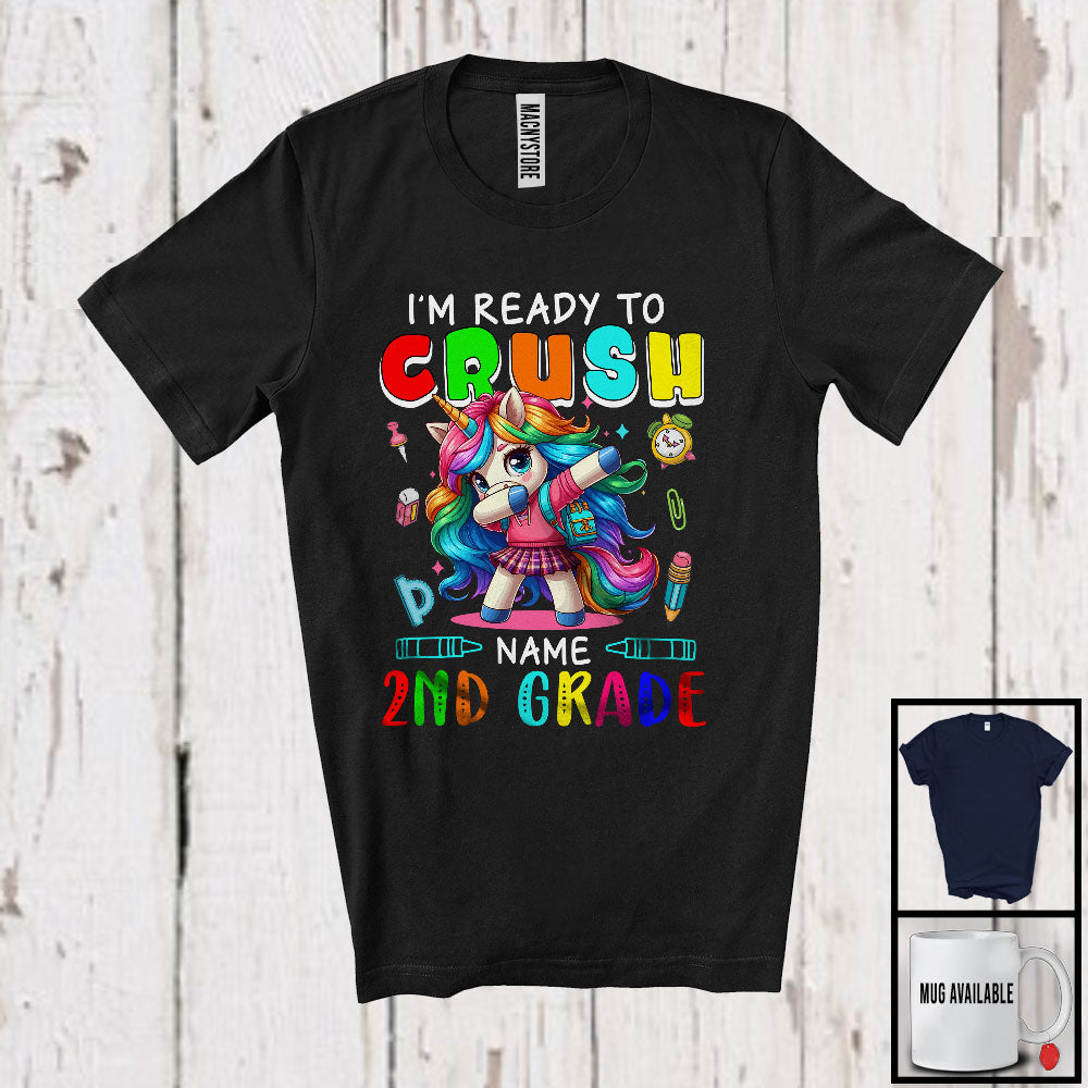 Personalized Custom Name I'm Ready To Crush 2nd Grade, Lovely First Day Of School Dabbing Unicorn T-Shirt