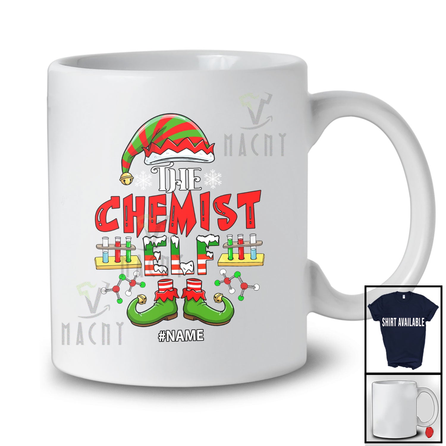 Personalized Custom Name I'm The Chemist Elf; Proud Christmas Jobs Careers Elf Family T-Shirt. This cotton t-shirt is a durable staple product with a classic fit. One of the most popular items, it has a relaxed style made for everyday and casual wear.