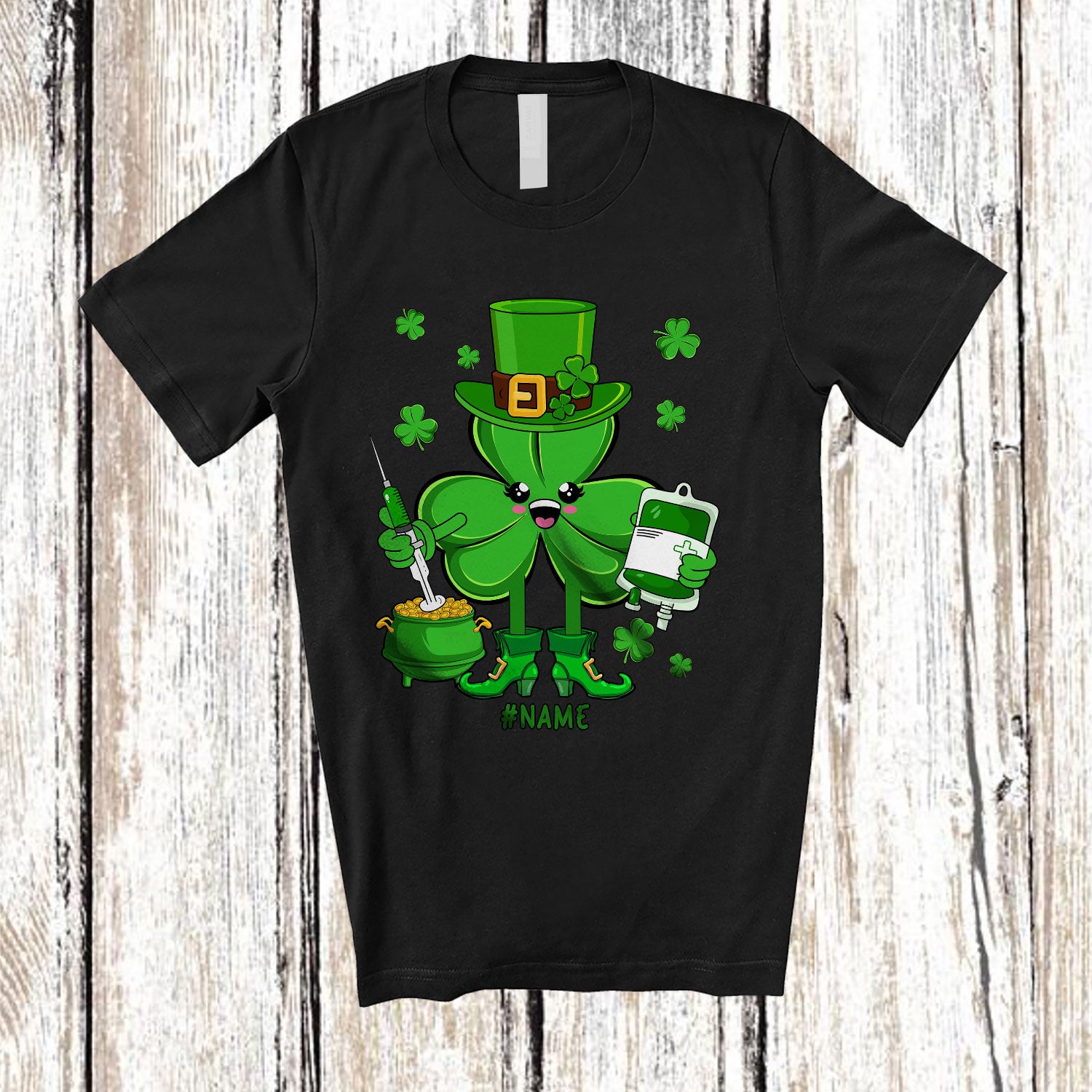 • Personalized Custom Name Irish Phlebotomist Shamrock; Awesome St. Patrick's Day Lucky Family T-Shirt. This cotton t-shirt is a durable staple product with a classic fit. One of the most popular items, it has a relaxed style made for everyday and casual wear.