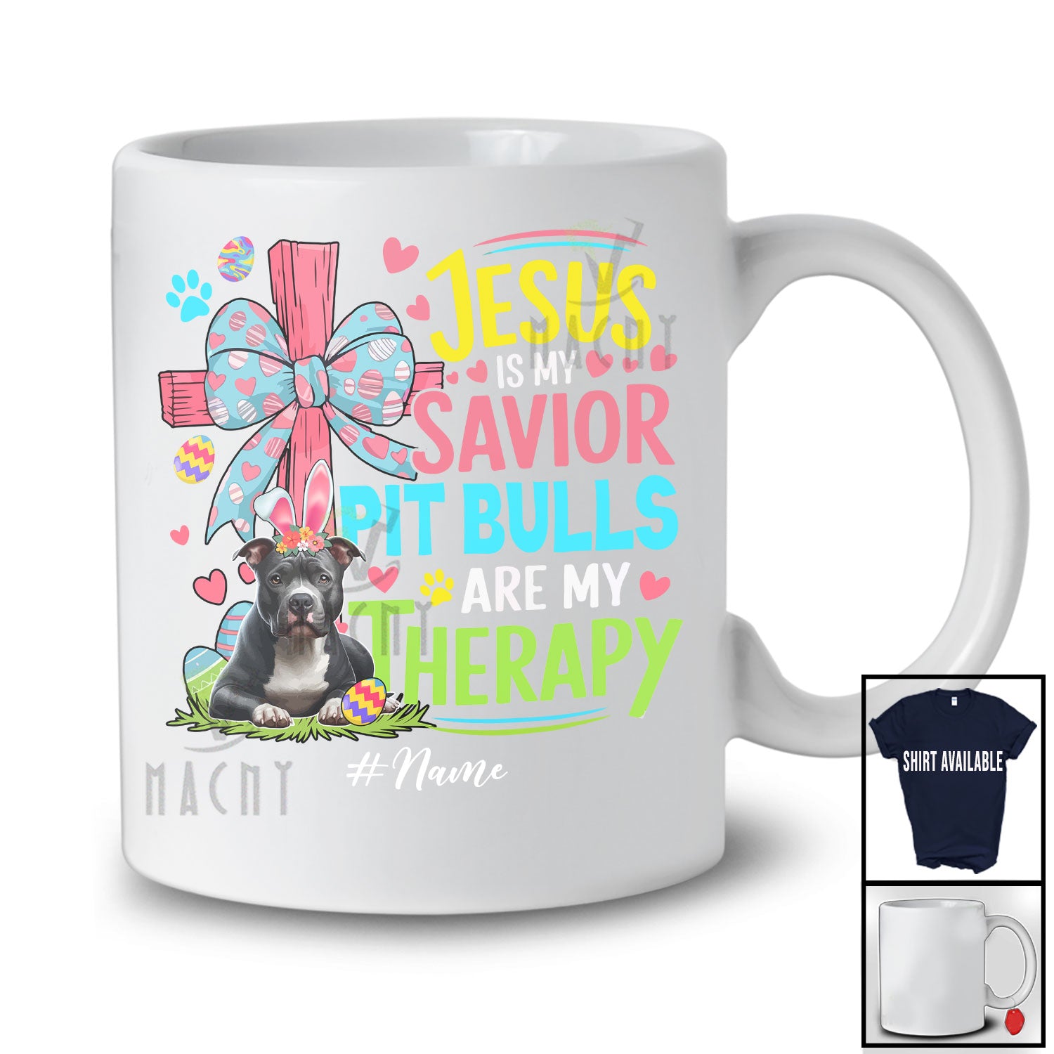 The Personalized Custom Name Jesus Is My Savior Pit Bulls Are My Therapy; Happy Easter Cross Eggs T-Shirt is far and away, one of our most popular items. People can't seem to get enough of it.