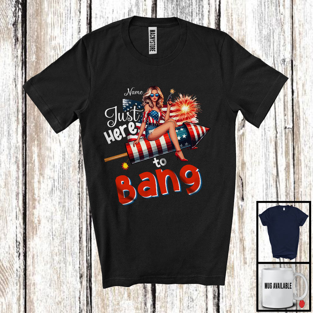 Personalized Custom Name Just Here To Bang, Sarcastic 4th Of July Women Firecracker, Patriotic T-Shirt