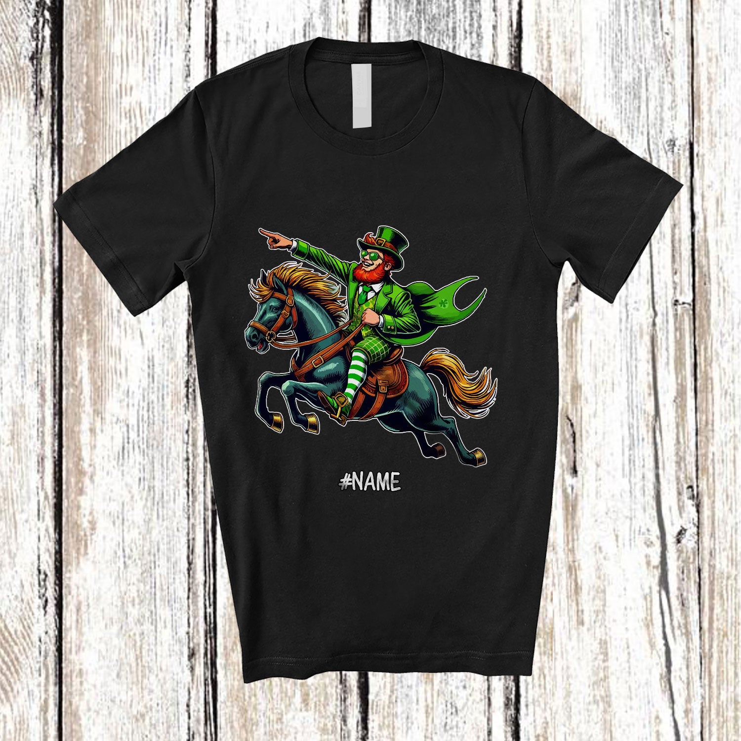Personalized Custom Name Leprechaun Riding; Amusing St. Patrick's Day Irish Family Group T-Shirt