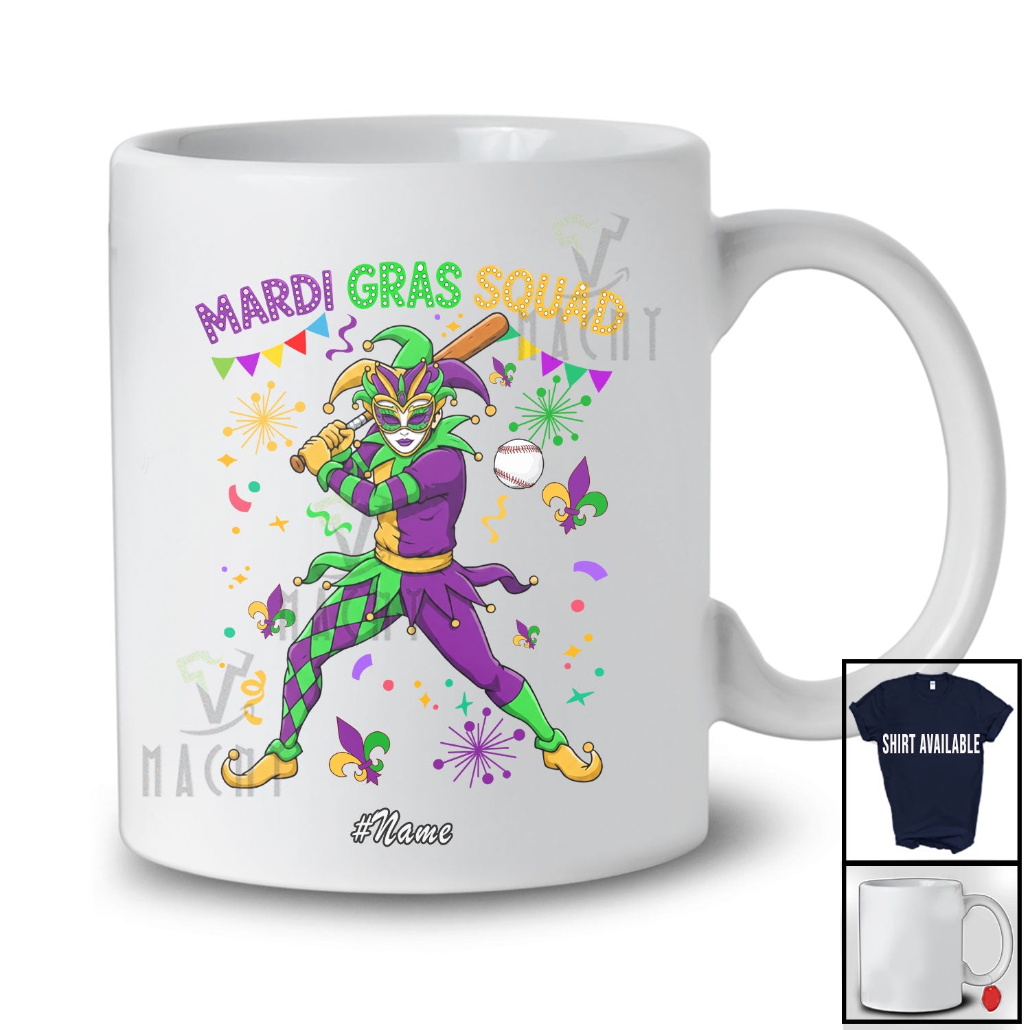 This Personalized Custom Name Mardi Gras Squad; Amusing Mardi Gras Baseball Playing Player Sport T-Shirt is great idea gift for your family, friends in this birthday, christmas, mother's day, father's day, patrick's day or any holiday.