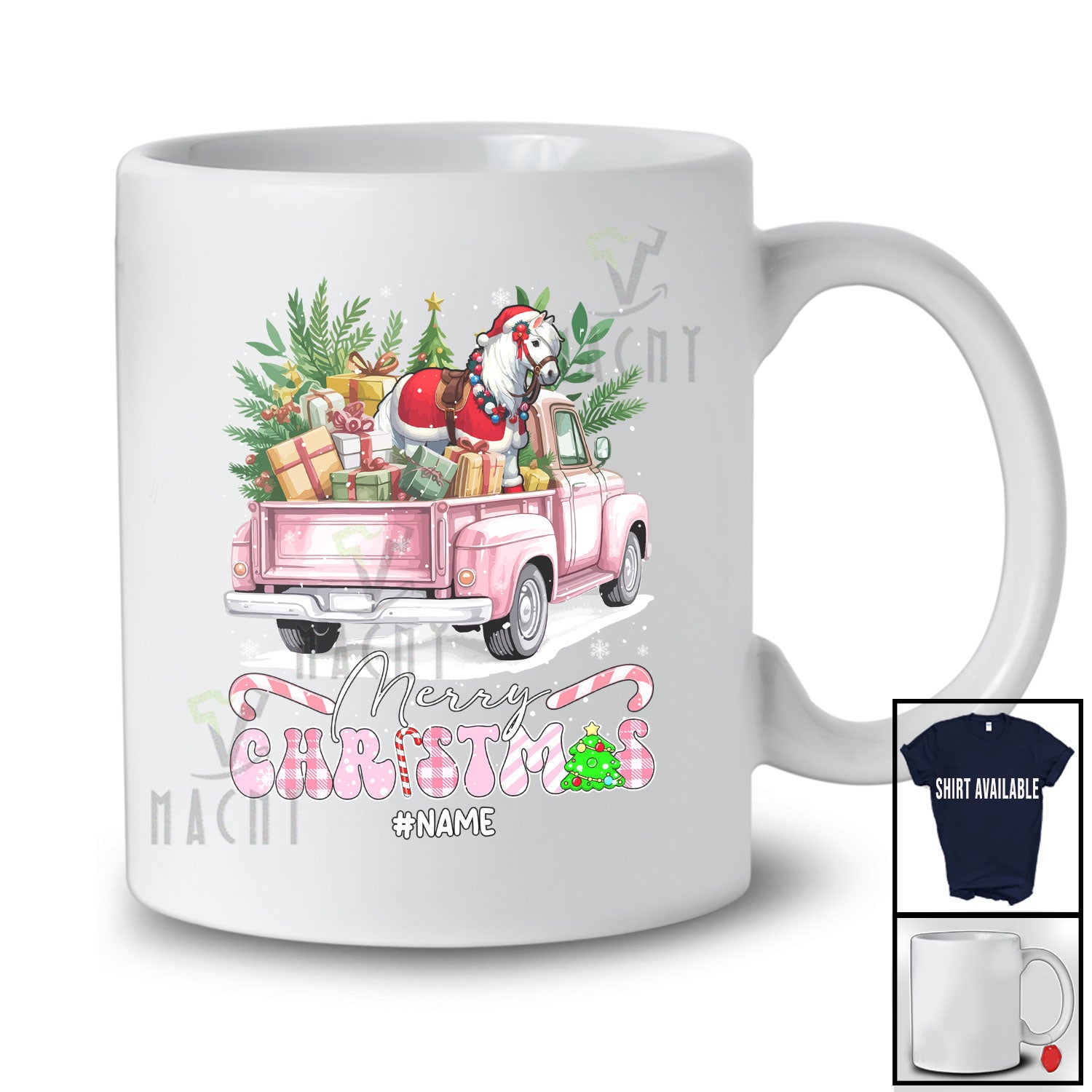 • Personalized Custom Name Merry Christmas; Joyful Plaid Horse On Pink Pickup Truck; Farmer T-Shirt. This cotton t-shirt is a durable staple product with a classic fit. One of the most popular items, it has a relaxed style made for everyday and casual wear.