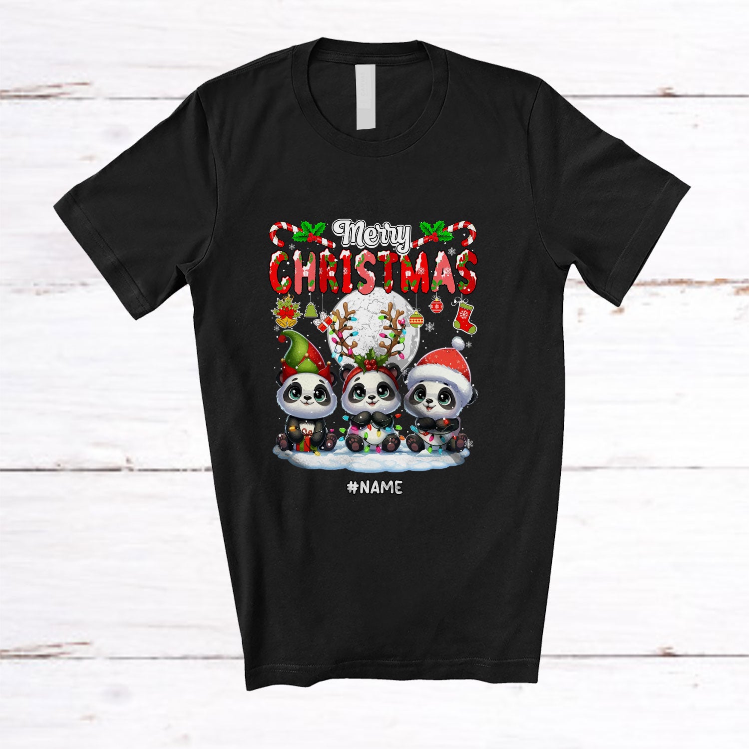 new MacnyStore - Personalized Custom Name Merry Christmas; Lovely X-mas Lights Three Panda Animal Lover T-Shirt – Macnystore