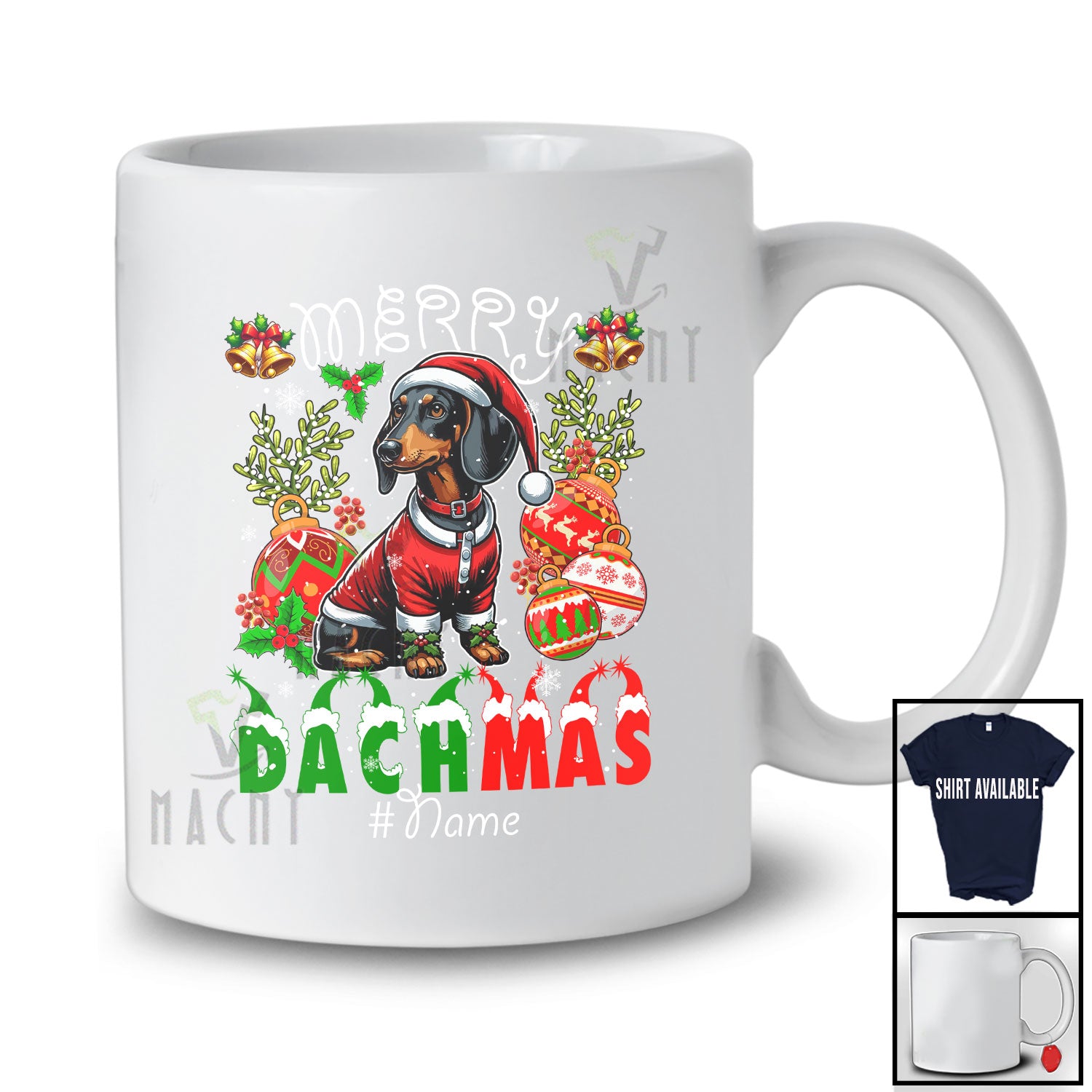 • The Personalized Custom Name Merry Dachmas; Lovely Christmas Santa Dachshund Ornaments; Family T-Shirt destined to impress, and priced at only $12.95, for a limited time.