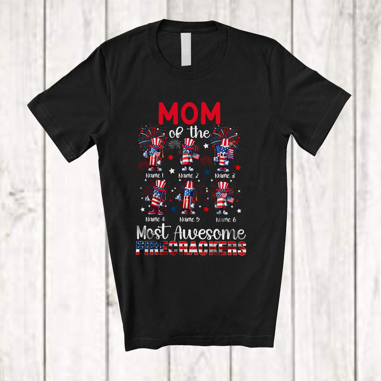 Personalized Custom Name Mom Of The Most Awesome Firecrackers; Lovely 4th Of July Fireworks T-Shirt