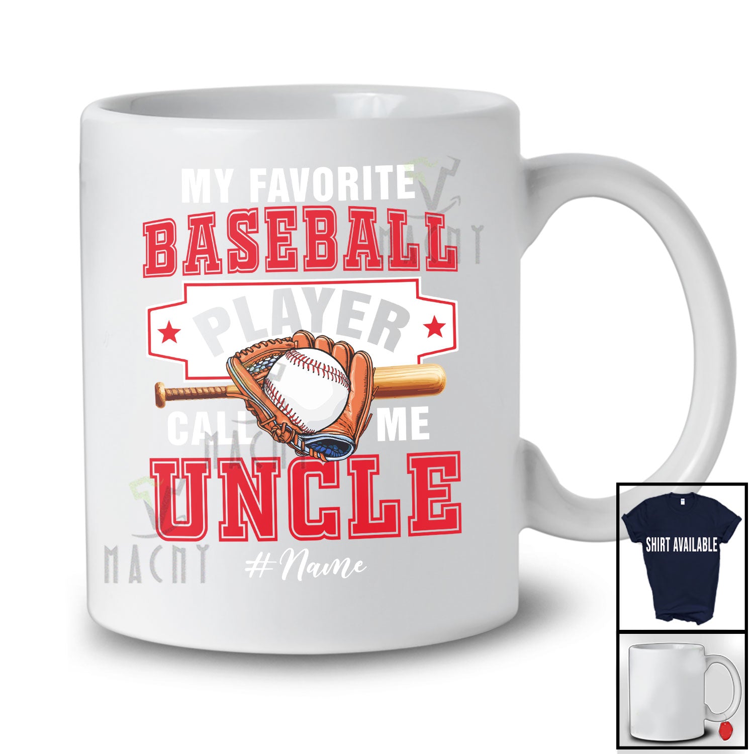 Personalized Custom Name My Favorite Baseball Player Calls Me Uncle; Proud Father's Day Family T-Shirt. This cotton t-shirt is a durable staple product with a classic fit. One of the most popular items, it has a relaxed style made for everyday and casual wear.