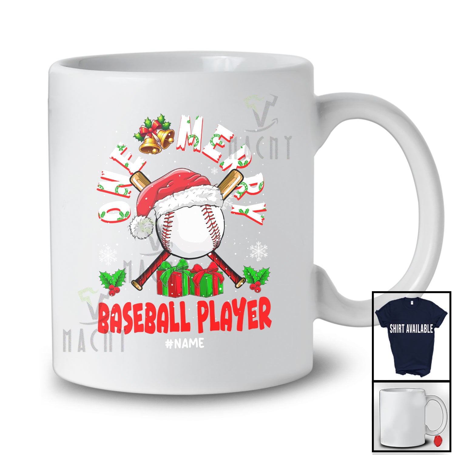 Personalized Custom Name One Merry Baseball Player; Fantastic Christmas Santa Sport Playing T-Shirt. This cotton t-shirt is a durable staple product with a classic fit. One of the most popular items, it has a relaxed style made for everyday and casual wear.