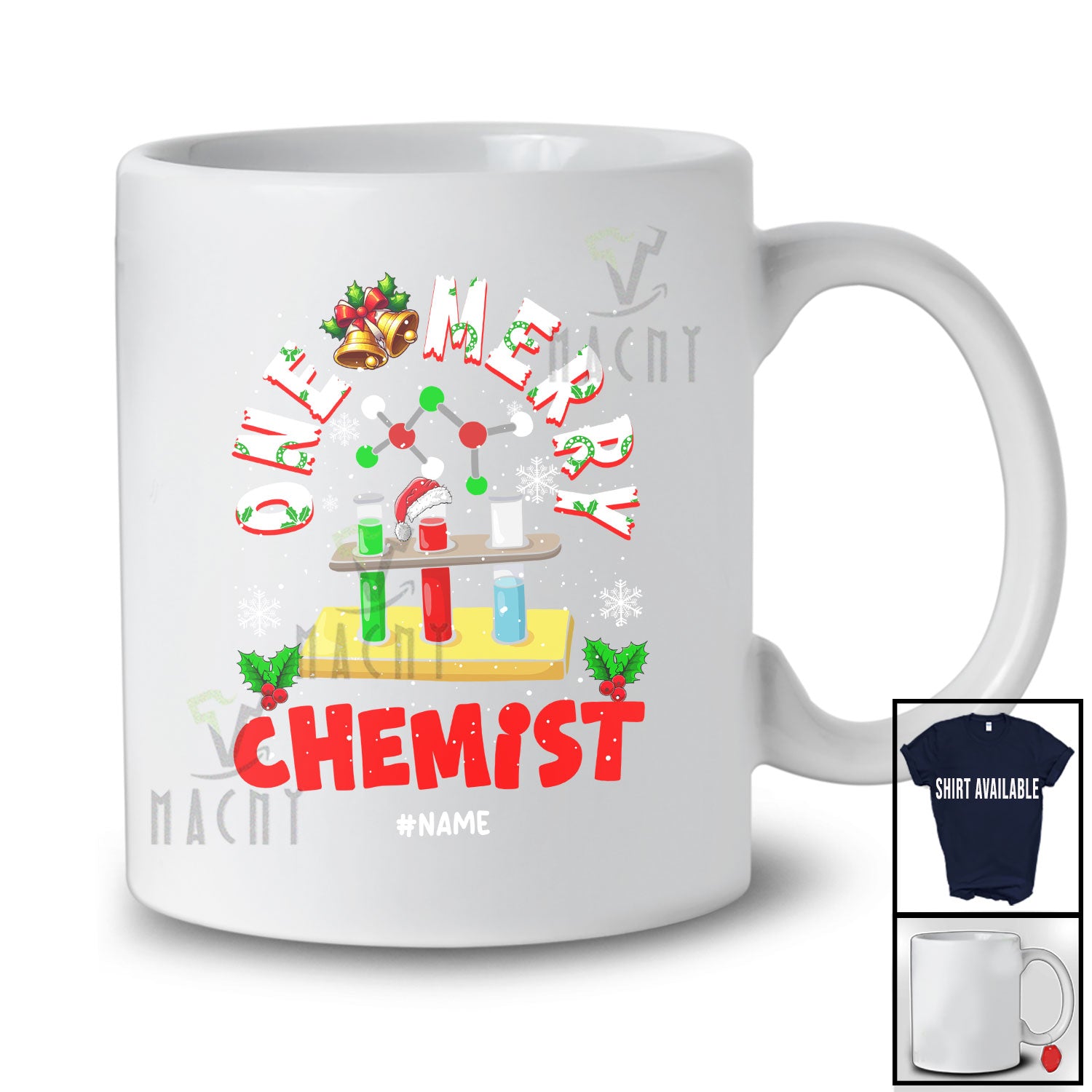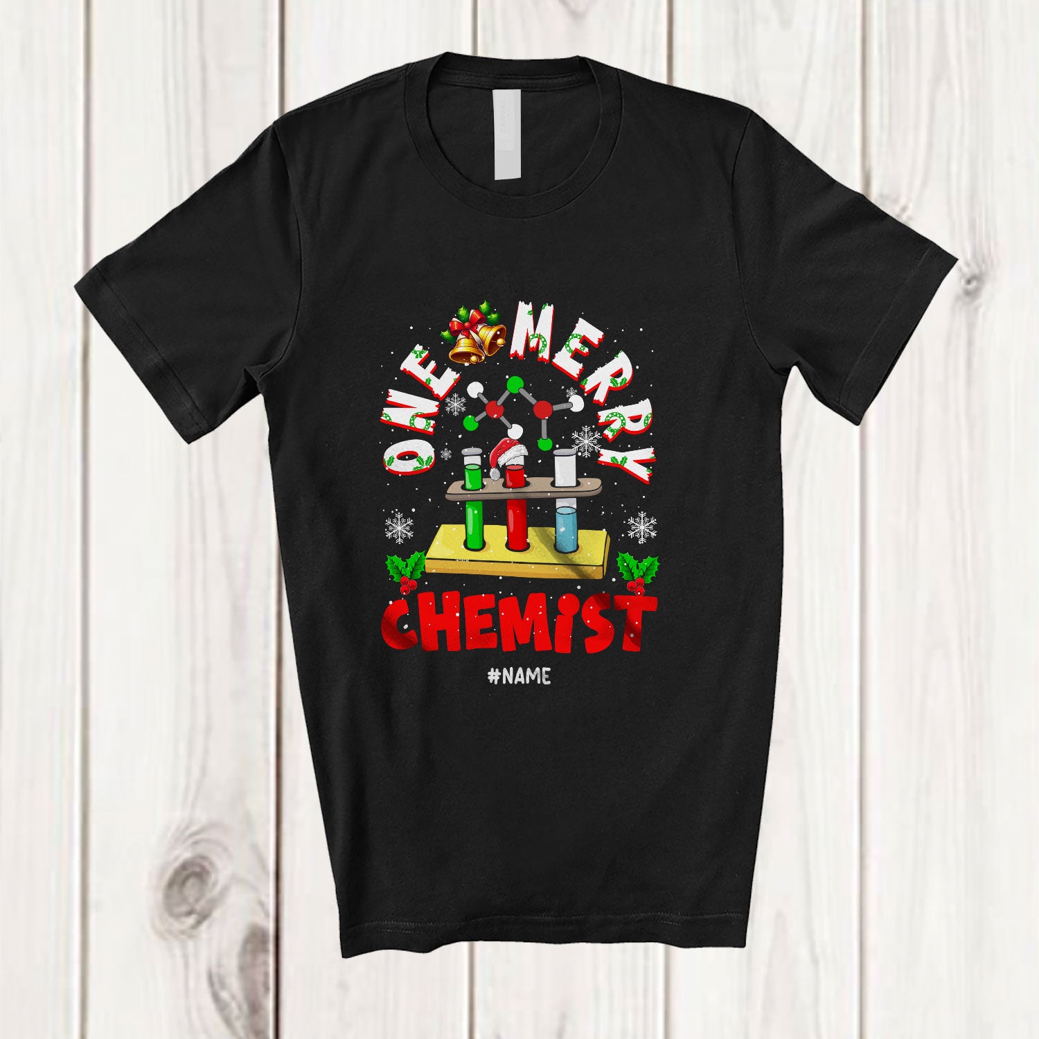 • Personalized Custom Name One Merry Chemist; Fantastic Christmas Santa Jobs Careers T-Shirt. This cotton t-shirt is a durable staple product with a classic fit. One of the most popular items, it has a relaxed style made for everyday and casual wear.