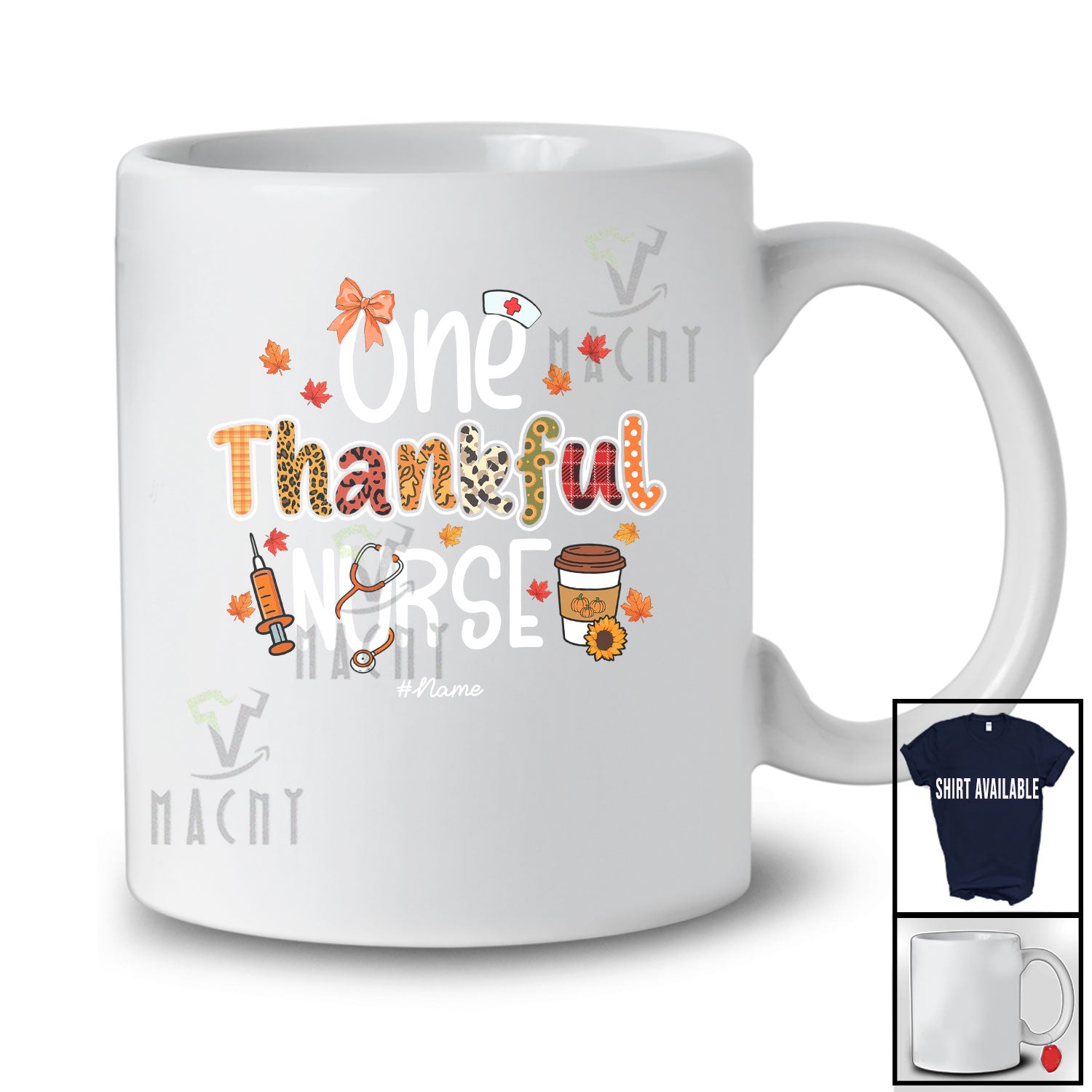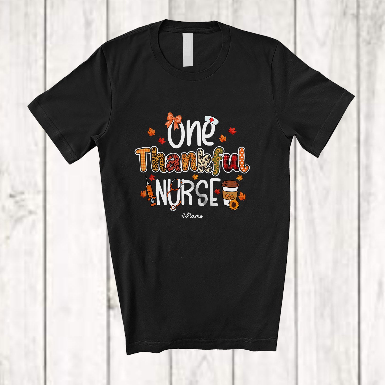 Personalized Custom Name One Thankful Nurse; Awesome Thanksgiving Leopard Plaid Coffee T-Shirt