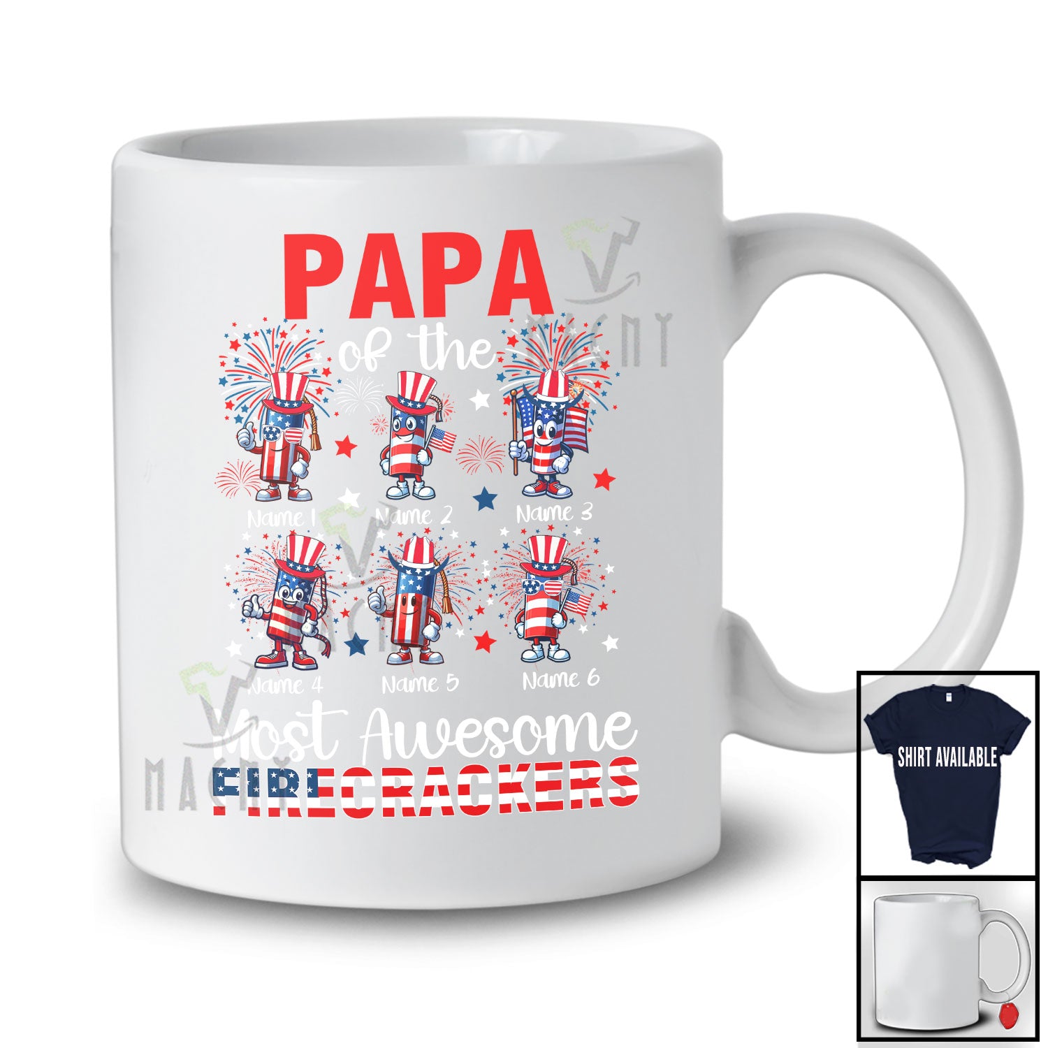 Personalized Custom Name Papa Of The Most Awesome Firecrackers; Lovely 4th Of July Fireworks T-Shirt. This cotton t-shirt is a durable staple product with a classic fit. One of the most popular items, it has a relaxed style made for everyday and casual wear.