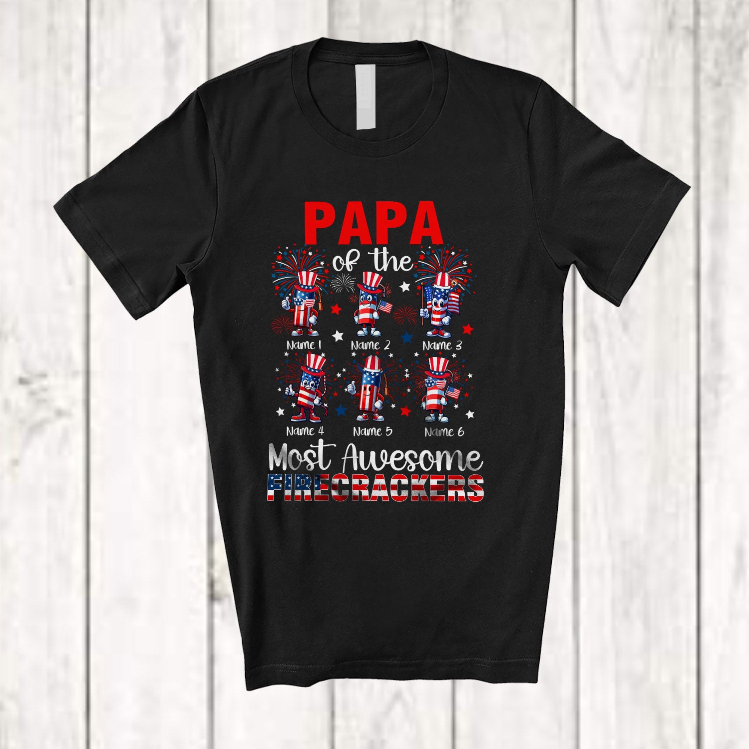 Personalized Custom Name Papa Of The Most Awesome Firecrackers; Lovely 4th Of July Fireworks T-Shirt