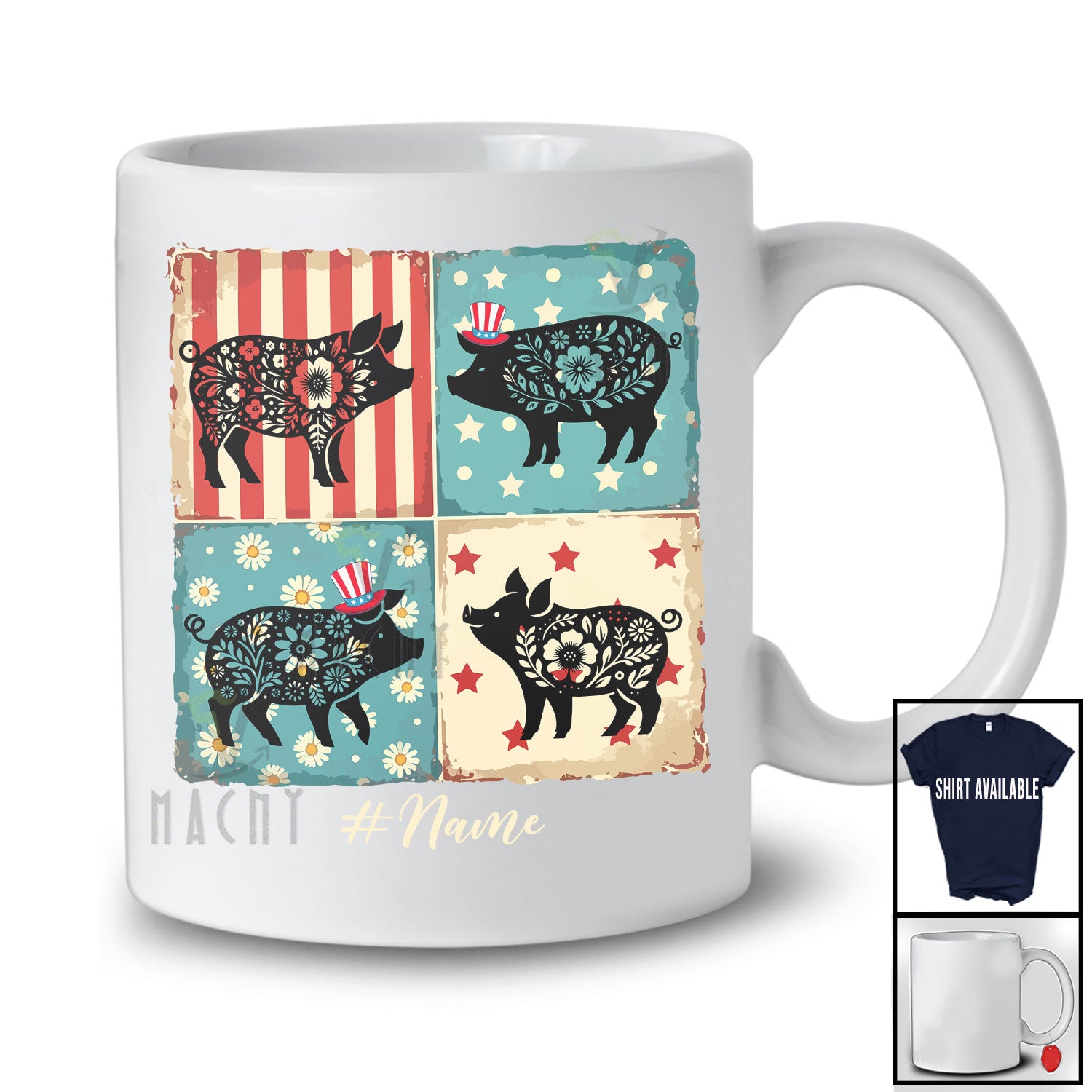 new MacnyStore - Personalized Custom Name Patriotic Floral Pig; Proud 4th of July Red Blue White Pig Farmer T-Shirt – Macnystore