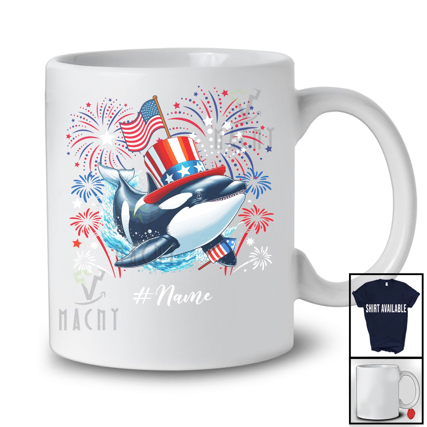 • Personalized Custom Name Patriotic Orca With US Flag; Lovely 4th Of July Orca Sea Animal T-Shirt. This cotton t-shirt is a durable staple product with a classic fit. One of the most popular items, it has a relaxed style made for everyday and casual wear.