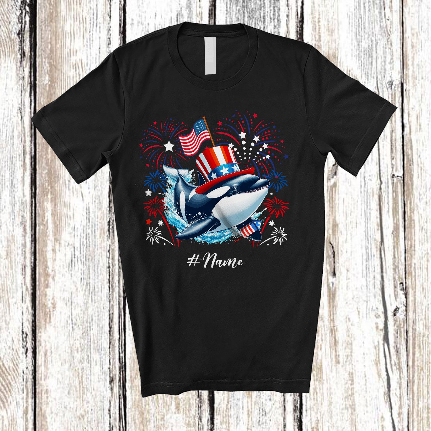 Personalized Custom Name Patriotic Orca With US Flag; Lovely 4th Of July Orca Sea Animal T-Shirt