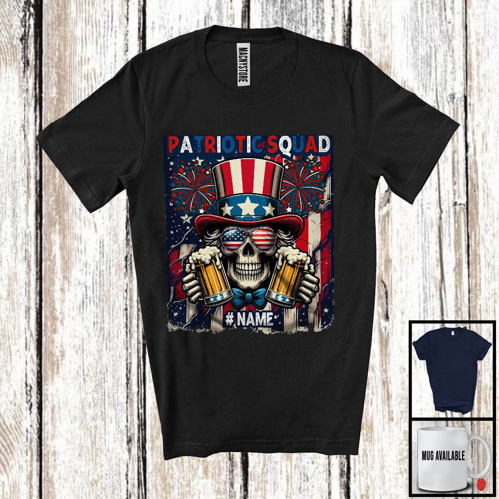 Personalized Custom Name Patriotic Squad, Proud 4th Of July Skull Drinking Beer, USA Drunker T-Shirt
