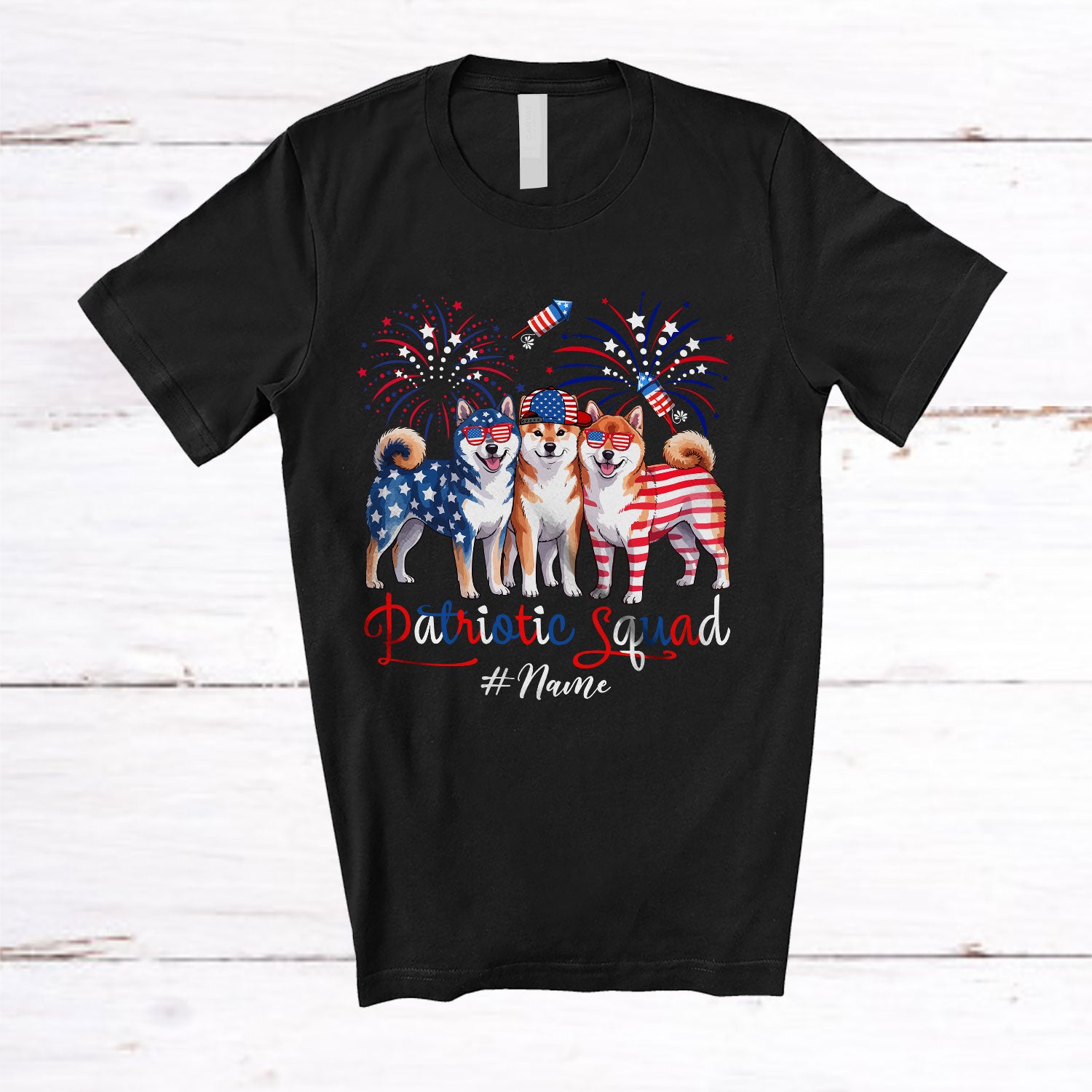 The Personalized Custom Name Patriotic Squad; Proud 4th Of July US Flag Three Shiba Owner T-Shirt is far and away, one of our most popular items. People can't seem to get enough of it.