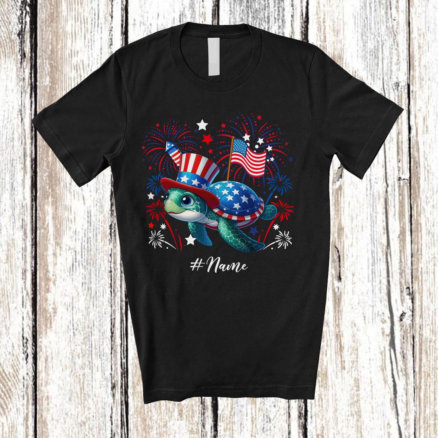 Personalized Custom Name Patriotic Turtle With US Flag; Lovely 4th Of July Turtle Sea Animal T-Shirt