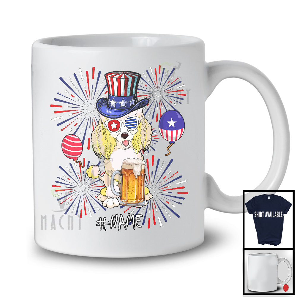 Personalized Custom Name Poodle Drinking Beer, Lovely 4th Of July Fireworks, Patriotic T-Shirt