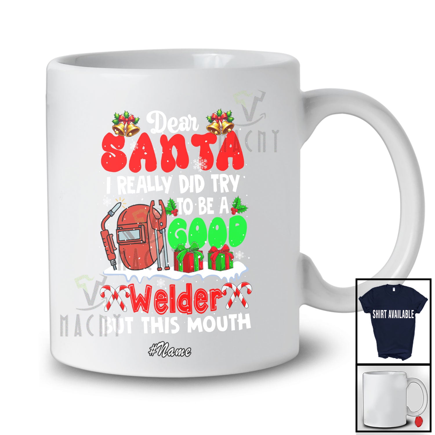 This Personalized Custom Name Santa I Did Try Be A Good Welder; Proud Christmas Jobs Family T-Shirt is great idea gift for your family, friends in this birthday, christmas, mother's day, father's day, patrick's day or any holiday.