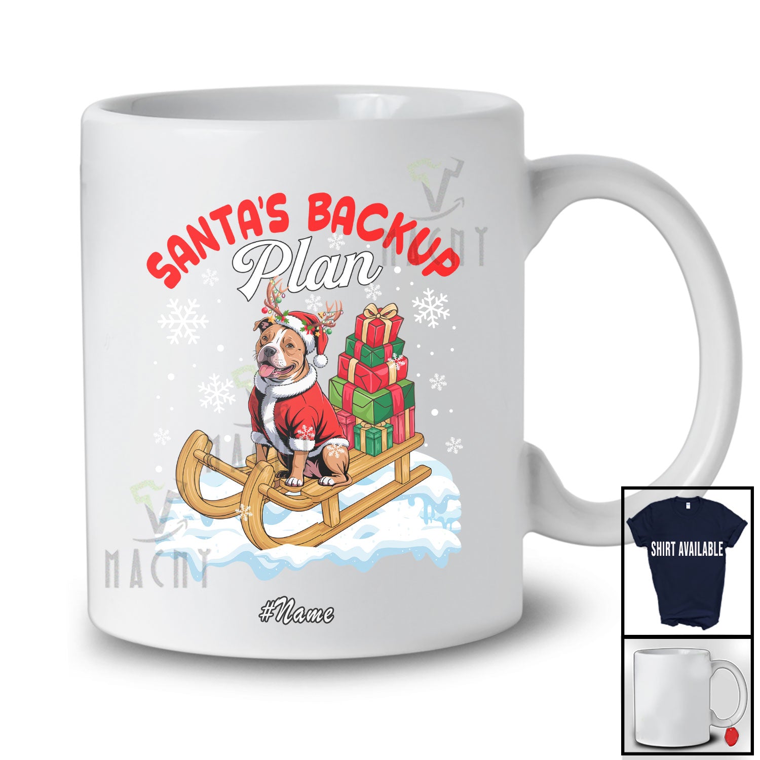 Life is too short to live without the Personalized Custom Name Santa's Backup Plan; Lovely Christmas Santa Sleigh Reindeer Pit Bull T-Shirt. Be happy. Be Content. Be Satisfied.