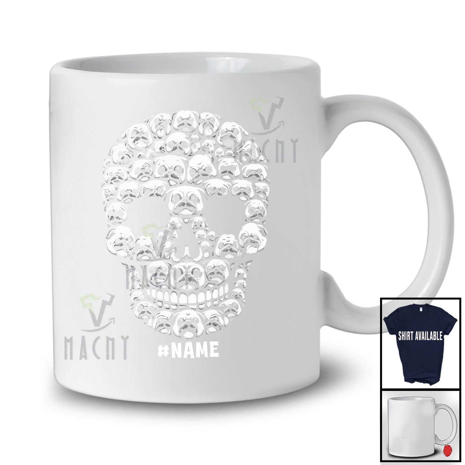 Every product is unique, just like you. If you're looking for a product that fits the mold of your life, the Personalized Custom Name Skull Shape Pug Owner; Scary Halloween Animal Family T-Shirt is for you.
