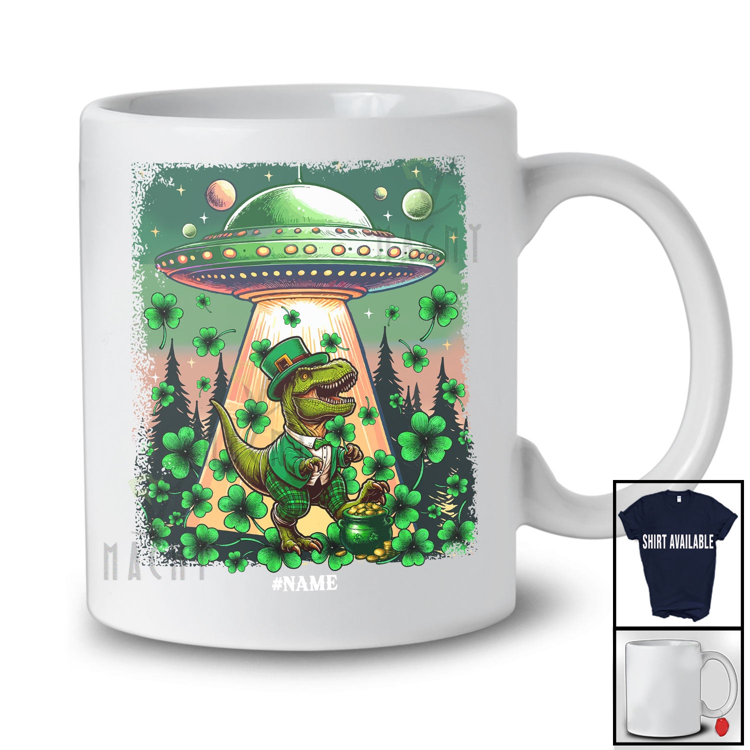 The Personalized Custom Name T-Rex Leprechaun UFO; Joyful St. Patrick's Day Stolen T-Rex Shamrock T-Shirt destined to impress, and priced at only $12.95, for a limited time.