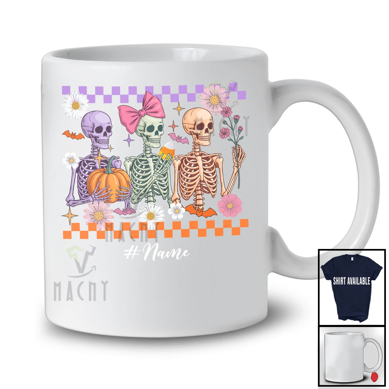 new MacnyStore - Personalized Custom Name Three Colorful Skeleton; Lovely Halloween Groovy Bow Tie; Flowers T-Shirt – Macnystore