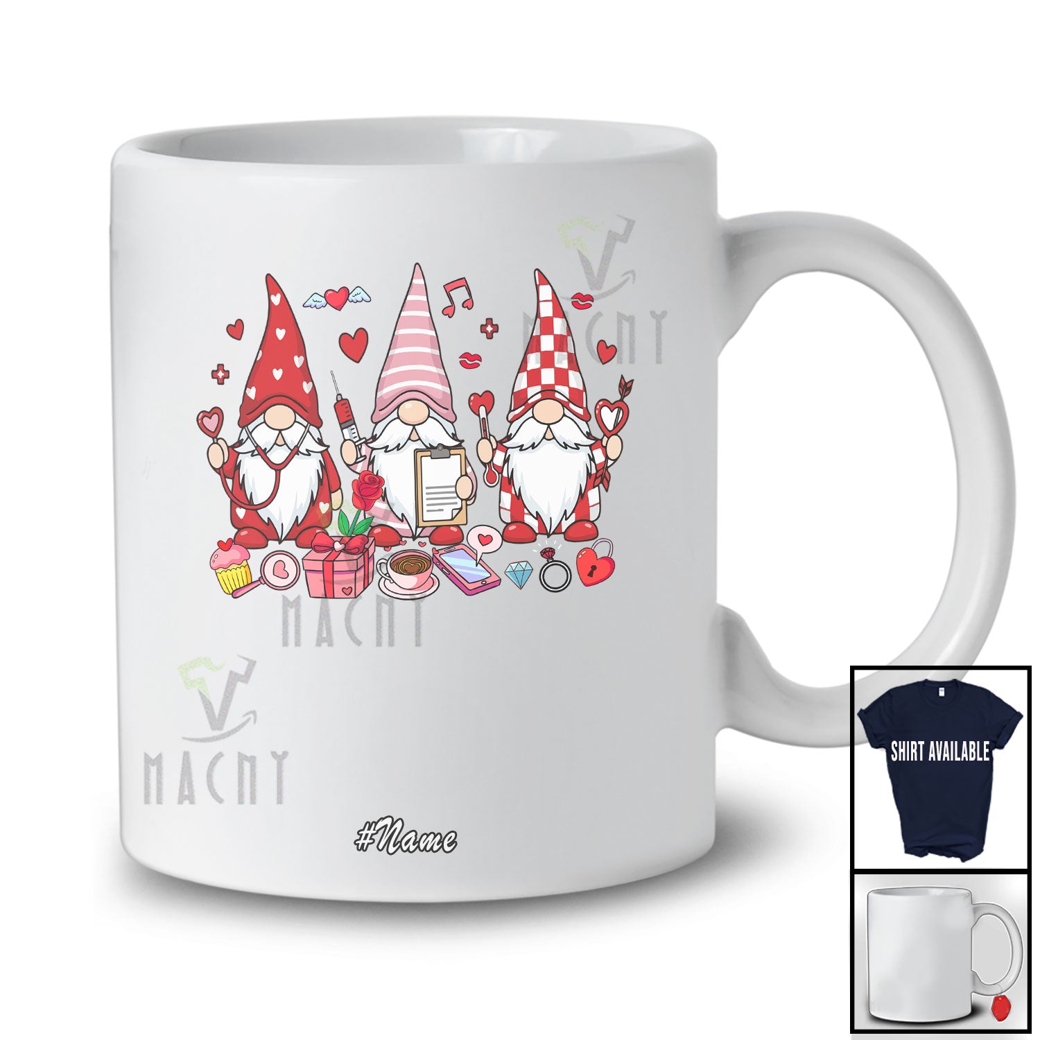 • Personalized Custom Name Three Gnomes Nurse Scrub Valentine; Lovely Gnomies Nurse RN I.C.U ER T-Shirt. This cotton t-shirt is a durable staple product with a classic fit. One of the most popular items, it has a relaxed style made for everyday and casual wear.