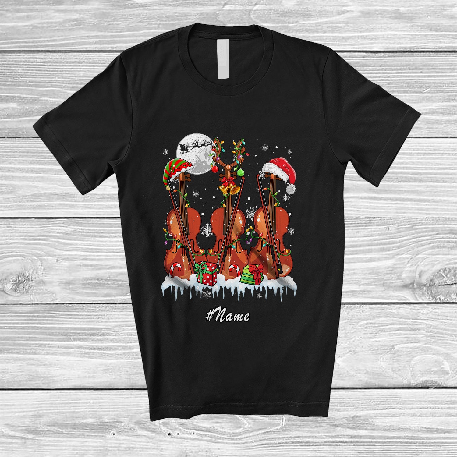 Personalized Custom Name Three Santa Elf Cello Violin; Merry Christmas Musical Instrument T-Shirt
