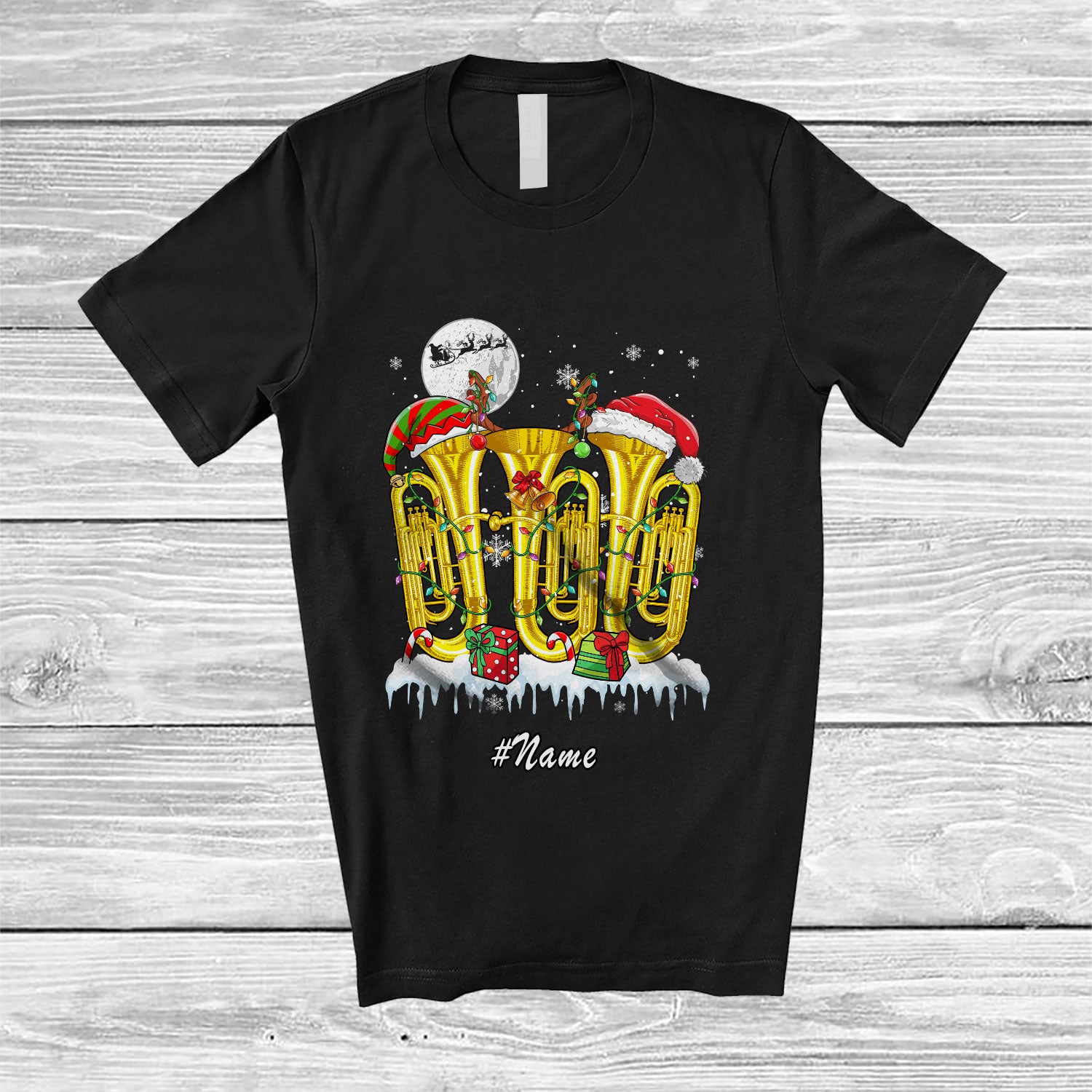 Personalized Custom Name Three Santa Elf Tuba; Merry Christmas Musical Instrument T-Shirt