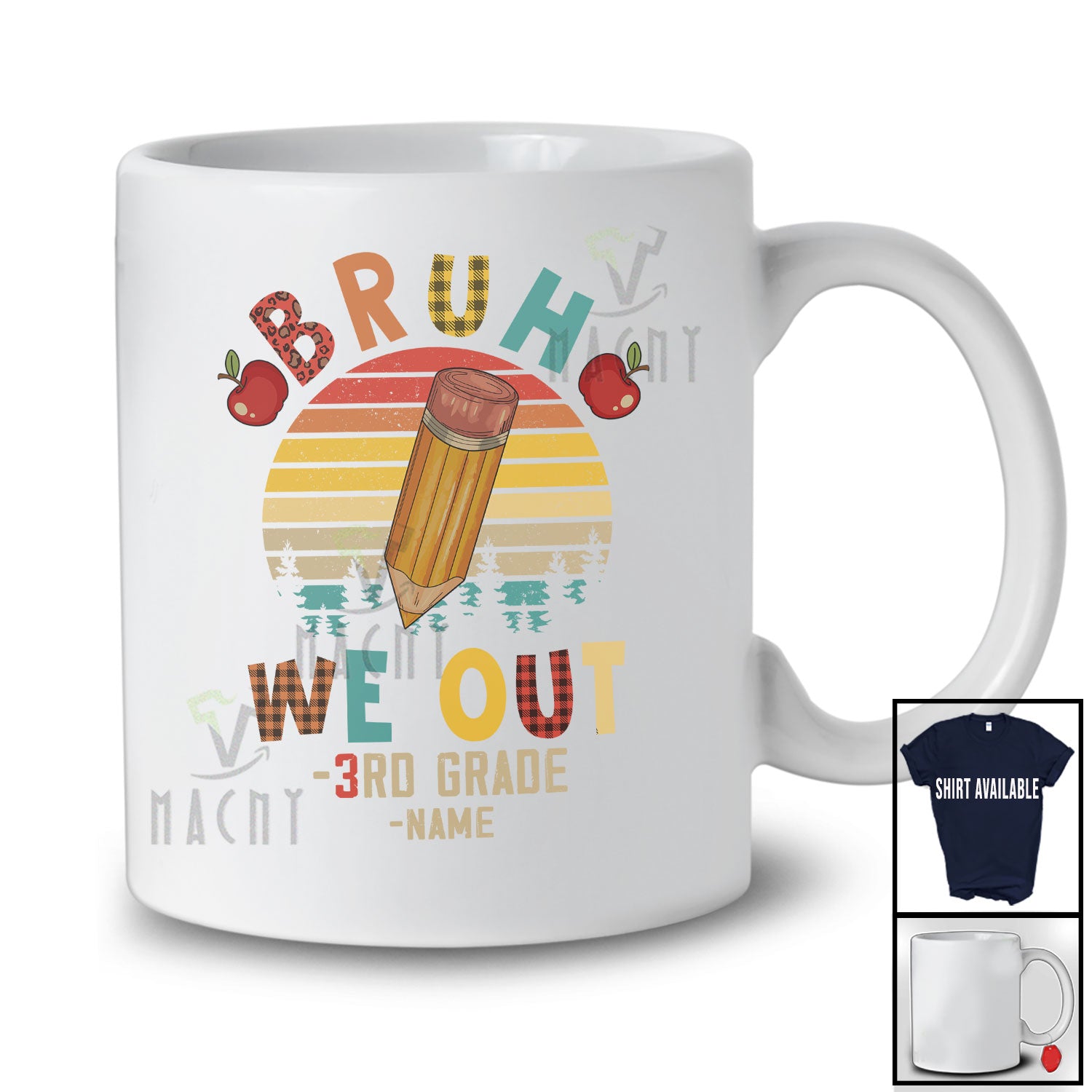 Personalized Custom Name Vintage Retro We Out 3rd Grade; Joyful Last Day Of School Plaid Teacher T-Shirt. This cotton t-shirt is a durable staple product with a classic fit. One of the most popular items, it has a relaxed style made for everyday and casual wear.