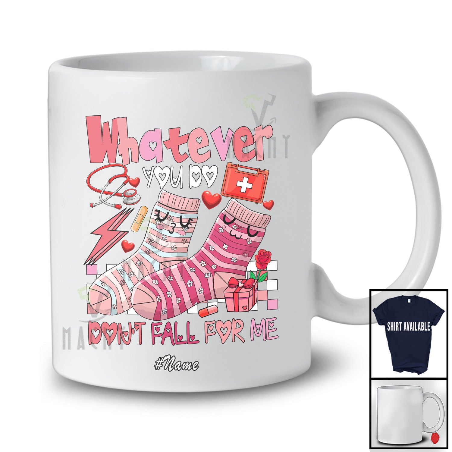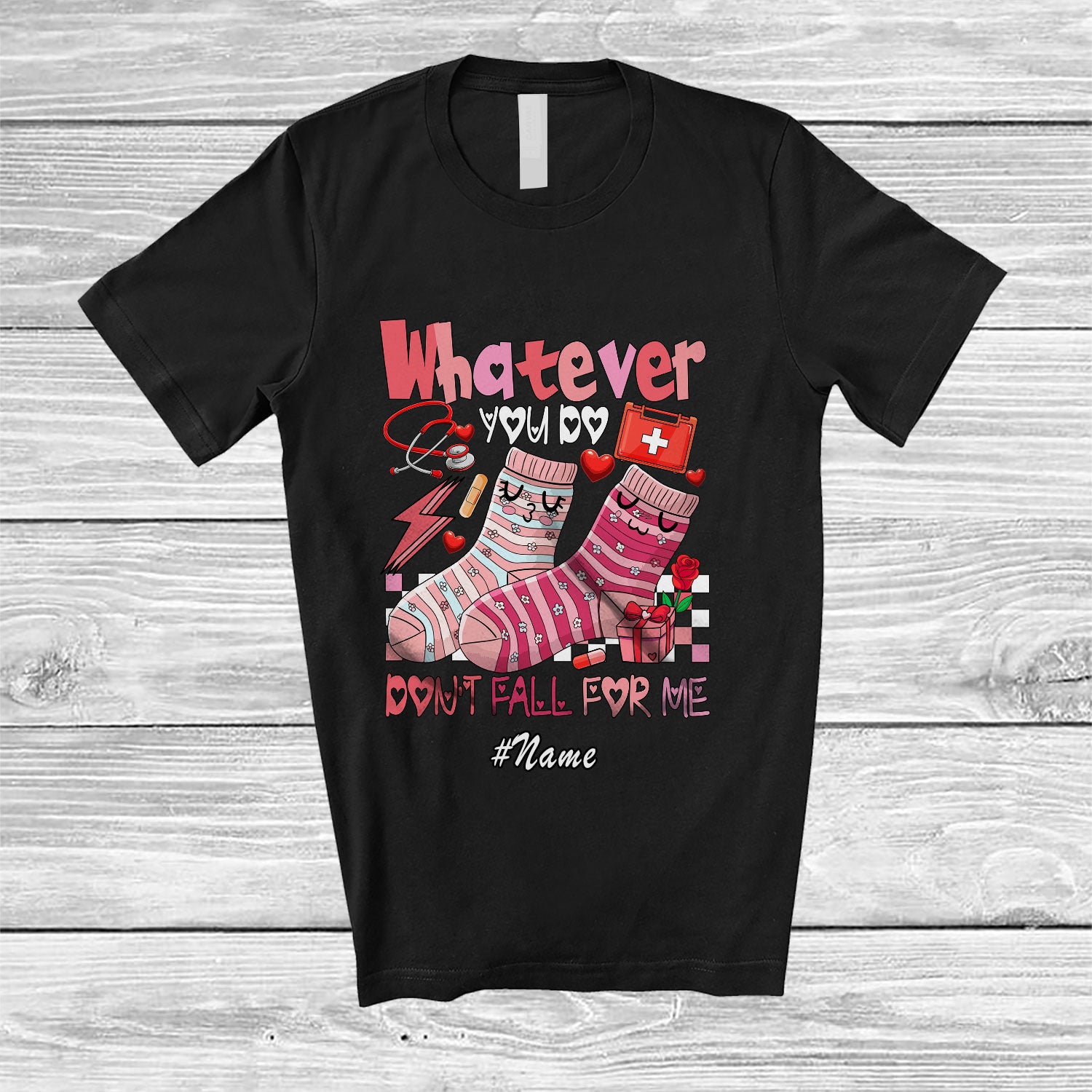 Personalized Custom Name Whatever Don't Fall For Me; Lovely Valentine Socks RN PCT CNA Nurse T-Shirt