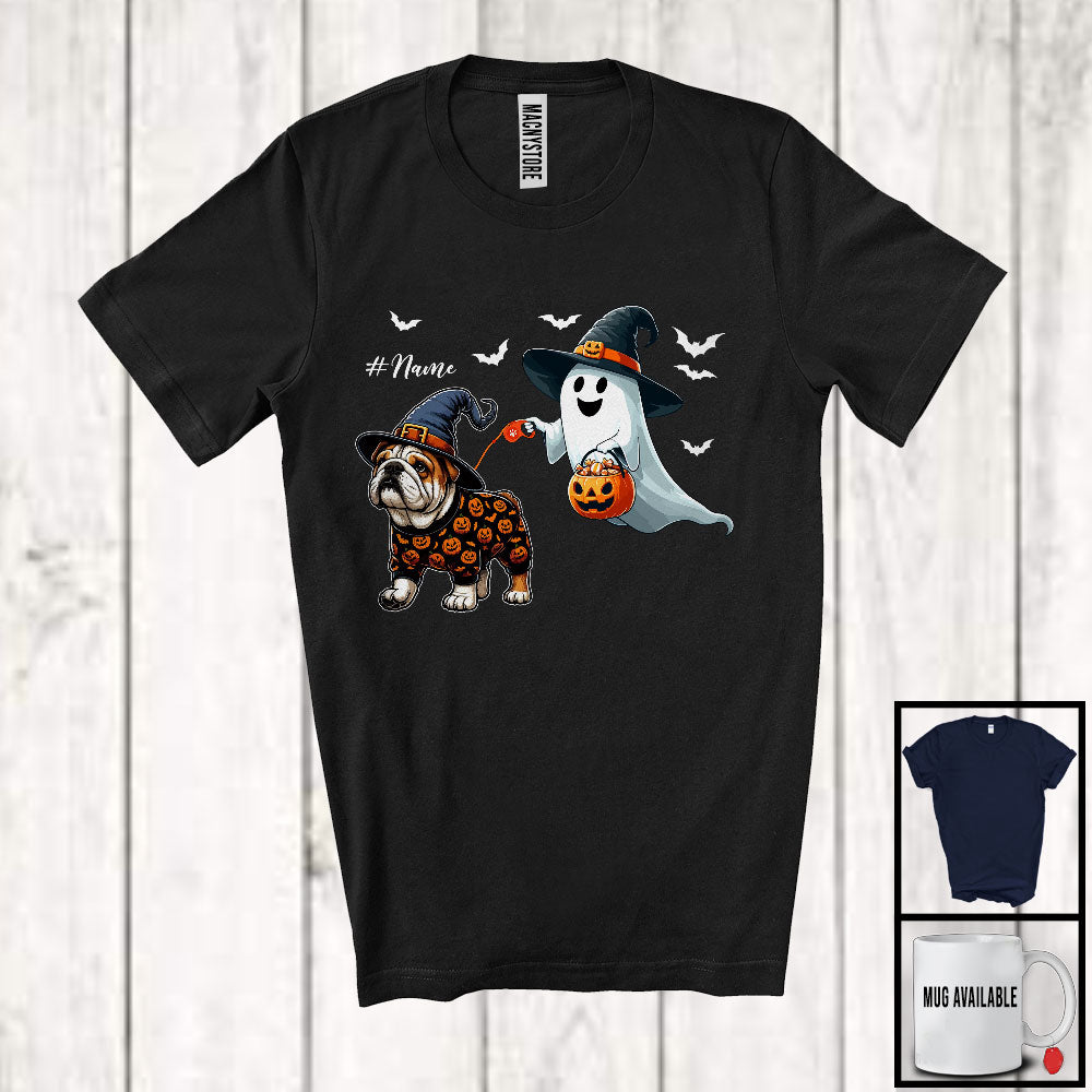 Personalized Custom Name Witch Boo Walking Bulldog; Lovely Halloween Ghost Candy T-Shirt