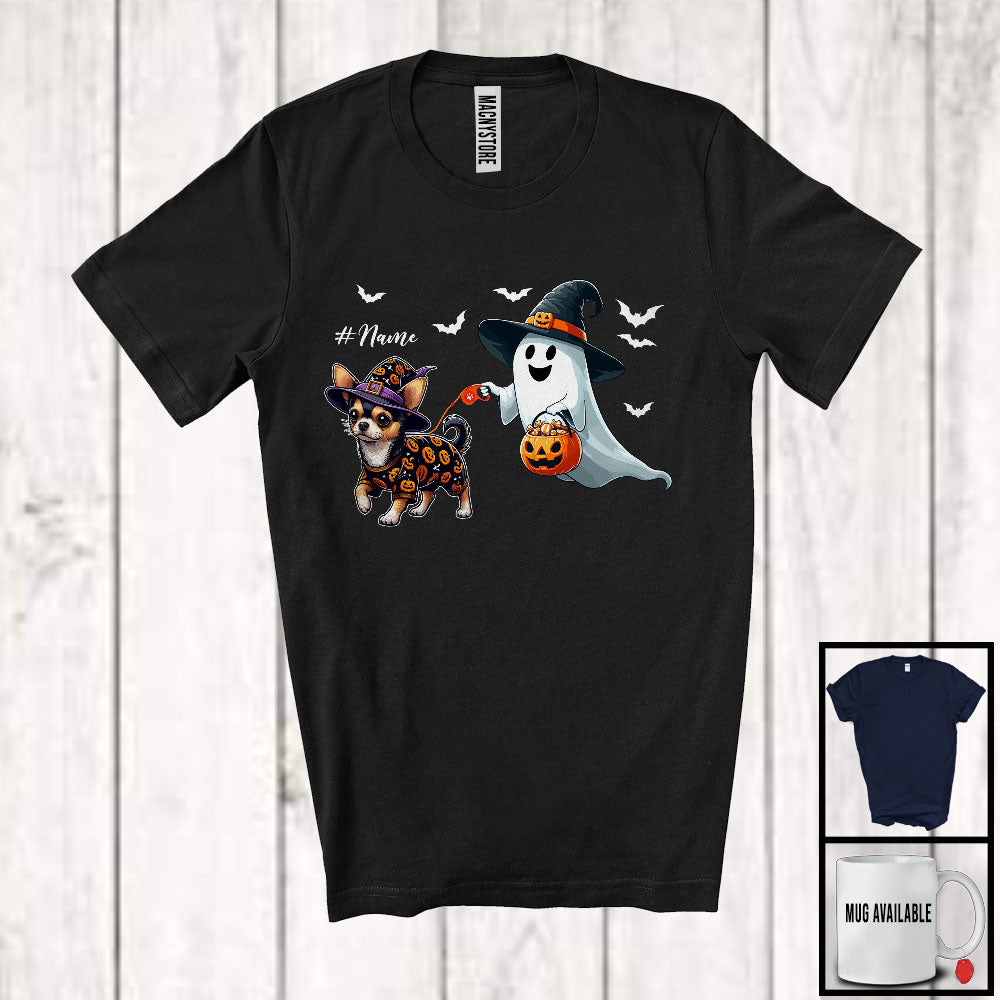 Personalized Custom Name Witch Boo Walking Chihuahua; Lovely Halloween Ghost Candy T-Shirt