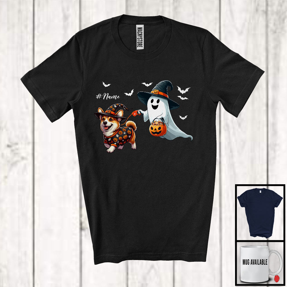 Personalized Custom Name Witch Boo Walking Corgi; Lovely Halloween Ghost Candy T-Shirt