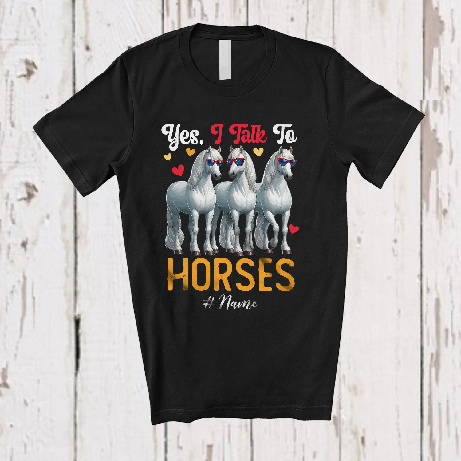 • The Personalized Custom Name Yes; I Talk To Horses; Humorous Three Sunglasses Horses Farmer T-Shirt is the yin, to your yang. You've found what you're looking for.