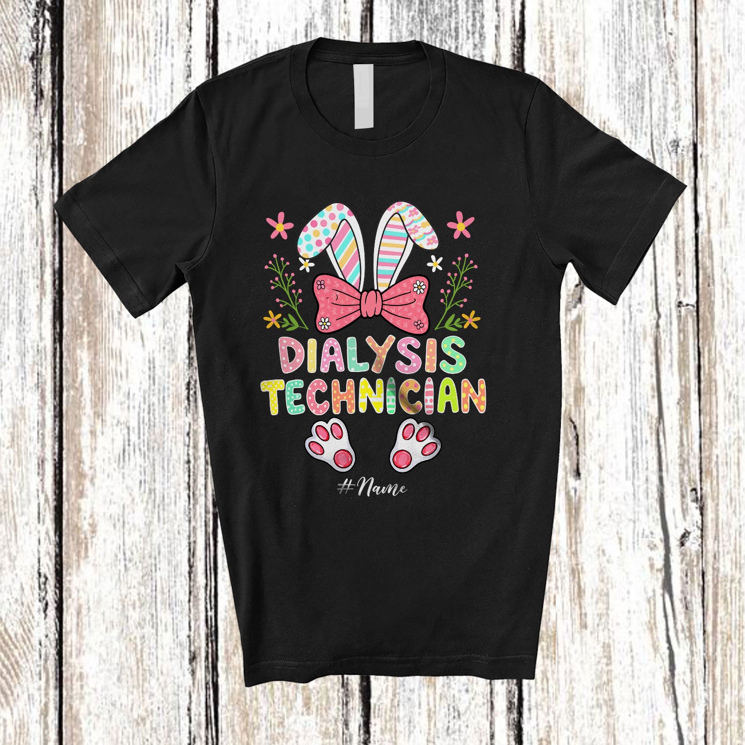 The Personalized Dialysis Technician; Lovely Bunny Egg Hunt Flowers; Custom Name Jobs Family T-Shirt is far and away, one of our most popular items. People can't seem to get enough of it.