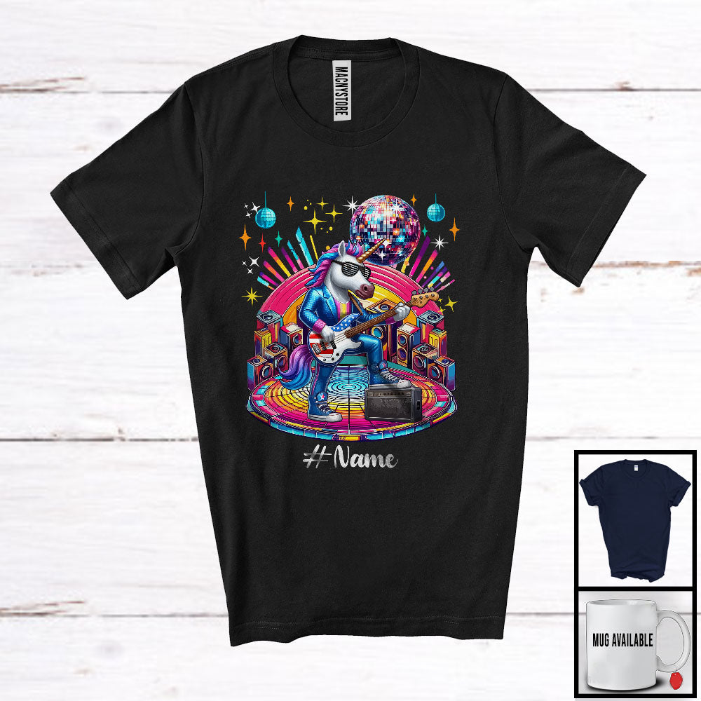 Personalized Disco Unicorn Playing Guitar; Joyful Custom Name Guitarist Unicorn; Music Lover T-Shirt