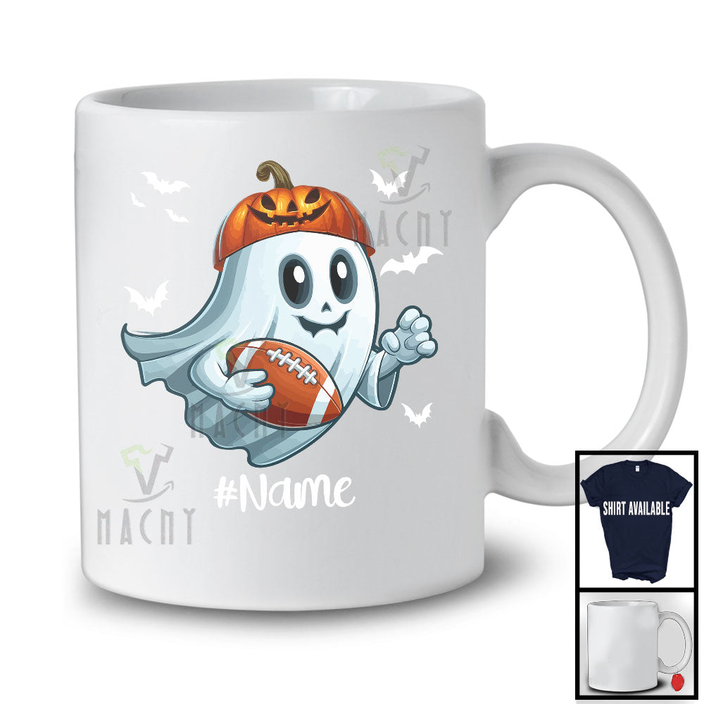 Personalized Ghost Playing Football, Horror Halloween Custom Name Football Player Team T-Shirt