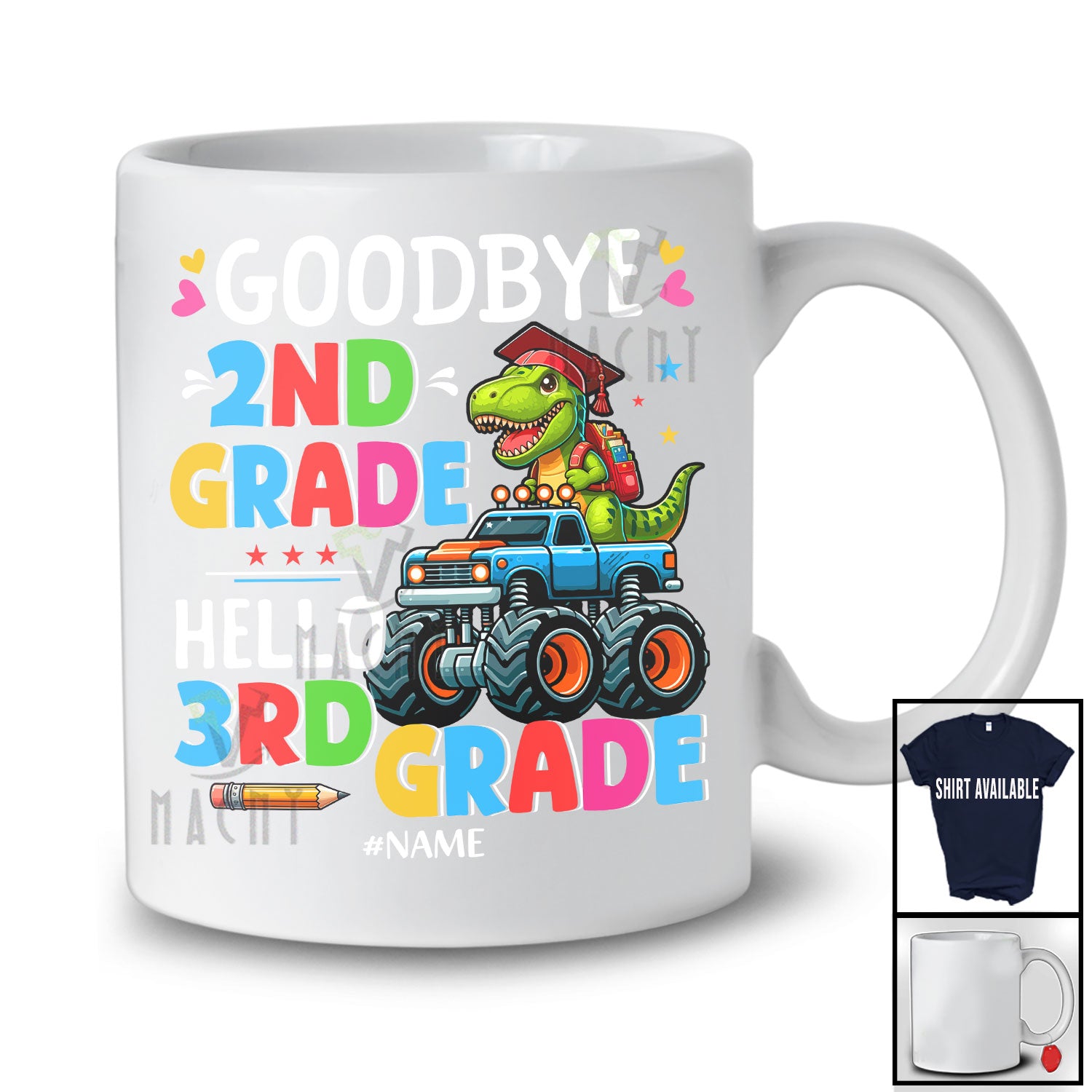 • Personalized Goodbye 2nd Grade Hello 3rd Grade; Joyful Graduate Custom Name T-Rex Monster Truck T-Shirt. This cotton t-shirt is a durable staple product with a classic fit. One of the most popular items, it has a relaxed style made for everyday and casual wear.