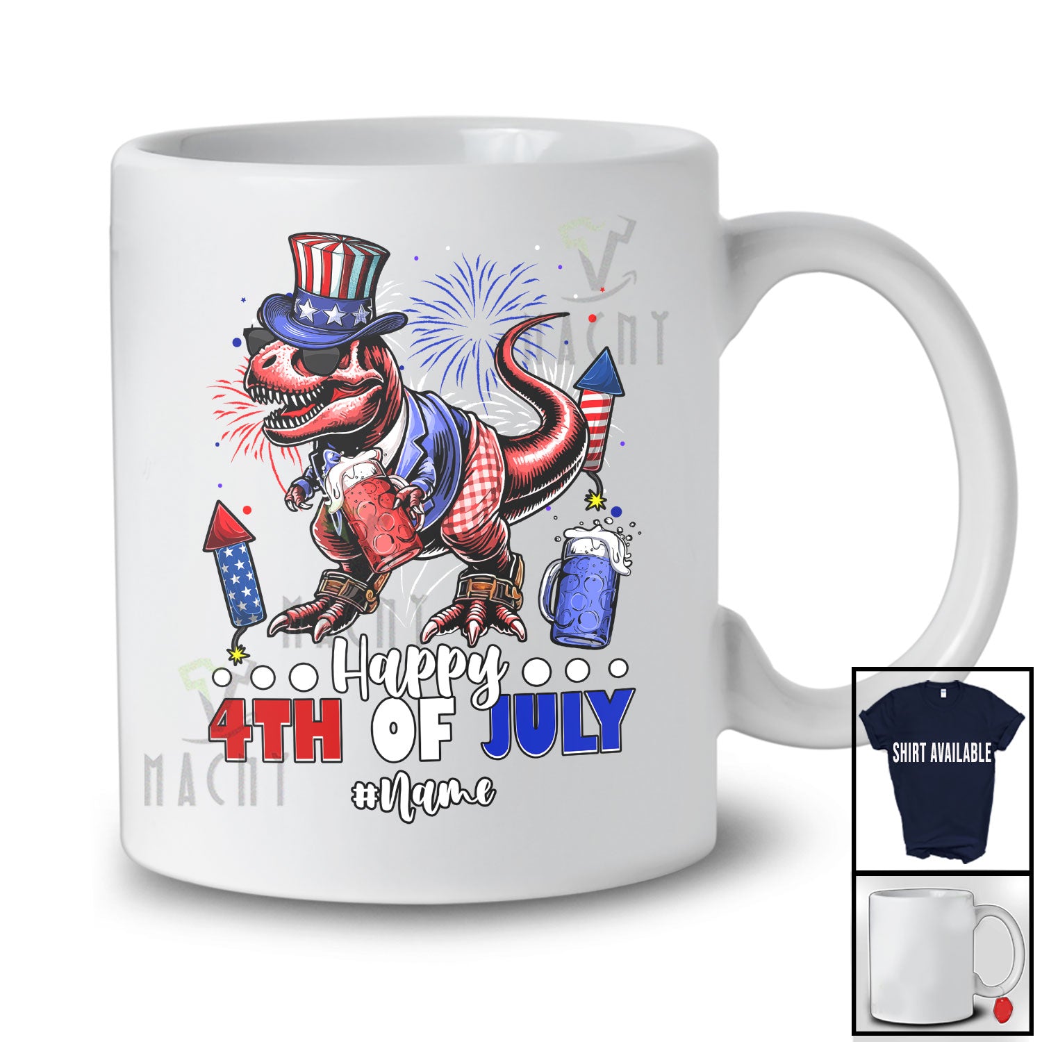 • Personalized Happy 4th Of July; Joyful Custom Name T-Rex Dinosaur Drunker Drinking Beer T-Shirt. This cotton t-shirt is a durable staple product with a classic fit. One of the most popular items, it has a relaxed style made for everyday and casual wear.